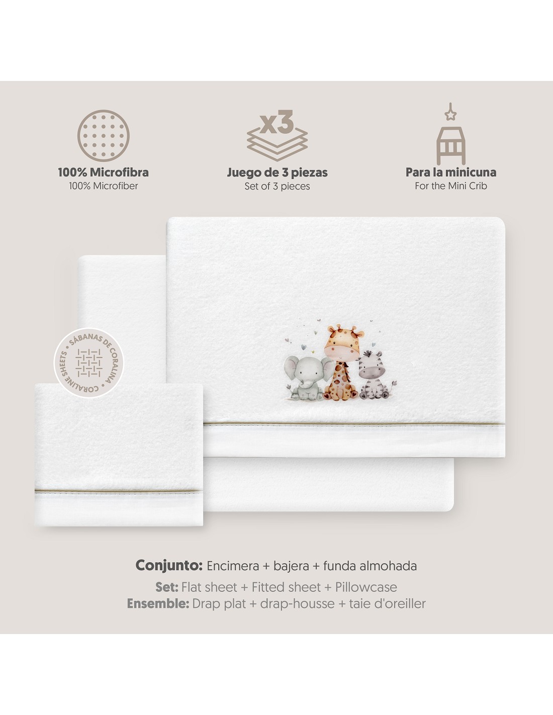 Triptico Minicuna Coralina Estampado Jirafa Elefante Bco/Verde