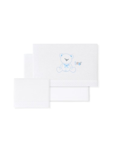 Compuesto por encimera (82 x 114 cm) , bajera (50 x 80 cm) y funda de almohada (50 x 30 cm). 100 % algodón. Lavar en frío.
