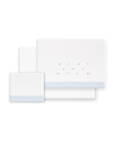 Compuesto por encimera (82 x 114 cm) , bajera (50 x 80 cm) y funda de almohada (50 x 30 cm). 100 % algodón. Lavar en frío.