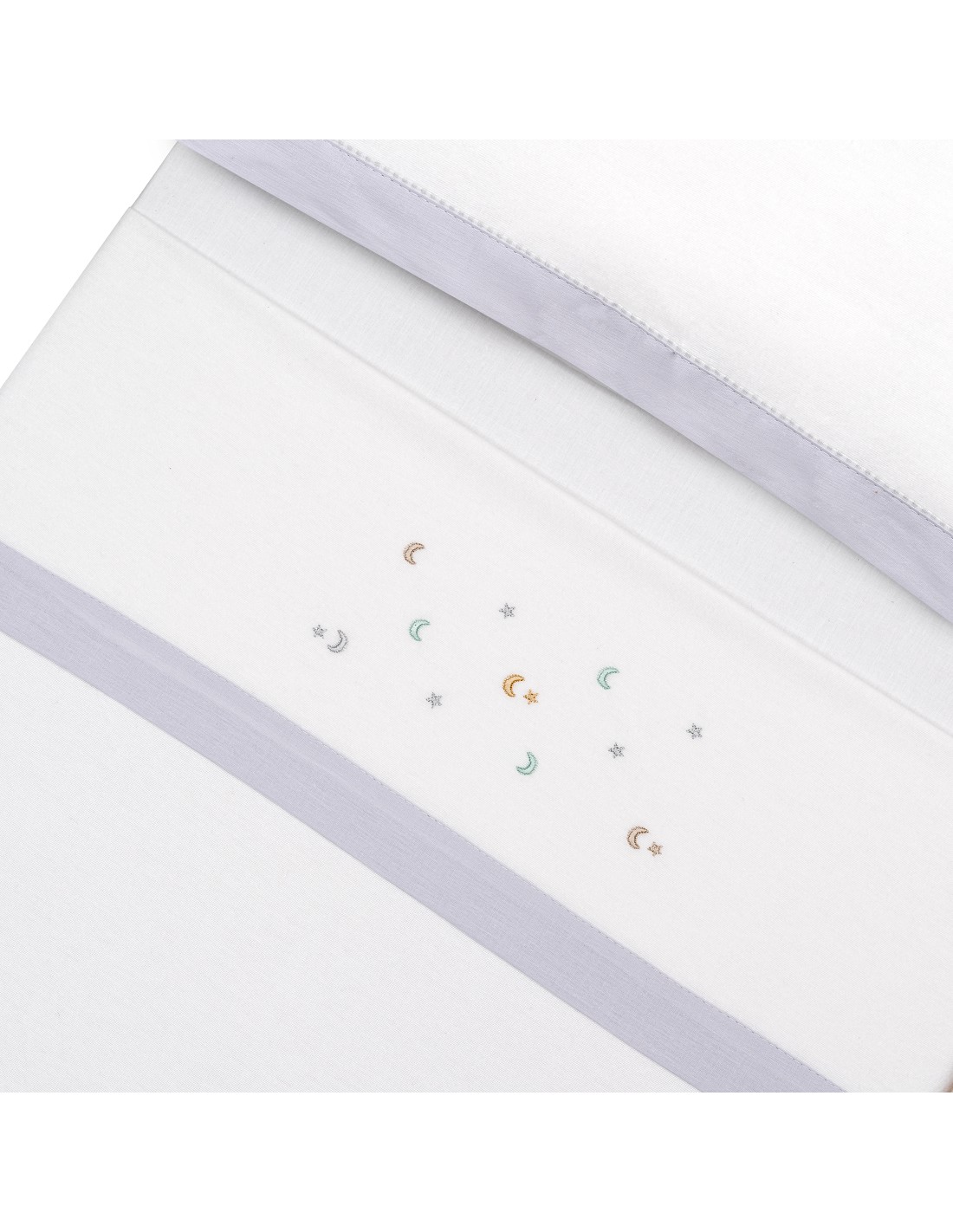 Compuesto por encimera (82 x 114 cm) , bajera (50 x 80 cm) y funda de almohada (50 x 30 cm). 100 % algodón. Lavar en frío.