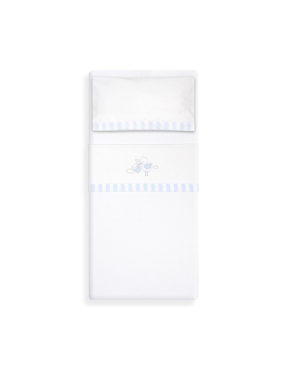 Compuesto por encimera (82 x 114 cm) , bajera (50 x 80 cm) y funda de almohada (50 x 30 cm). 100 % algodón. Lavar en frío.