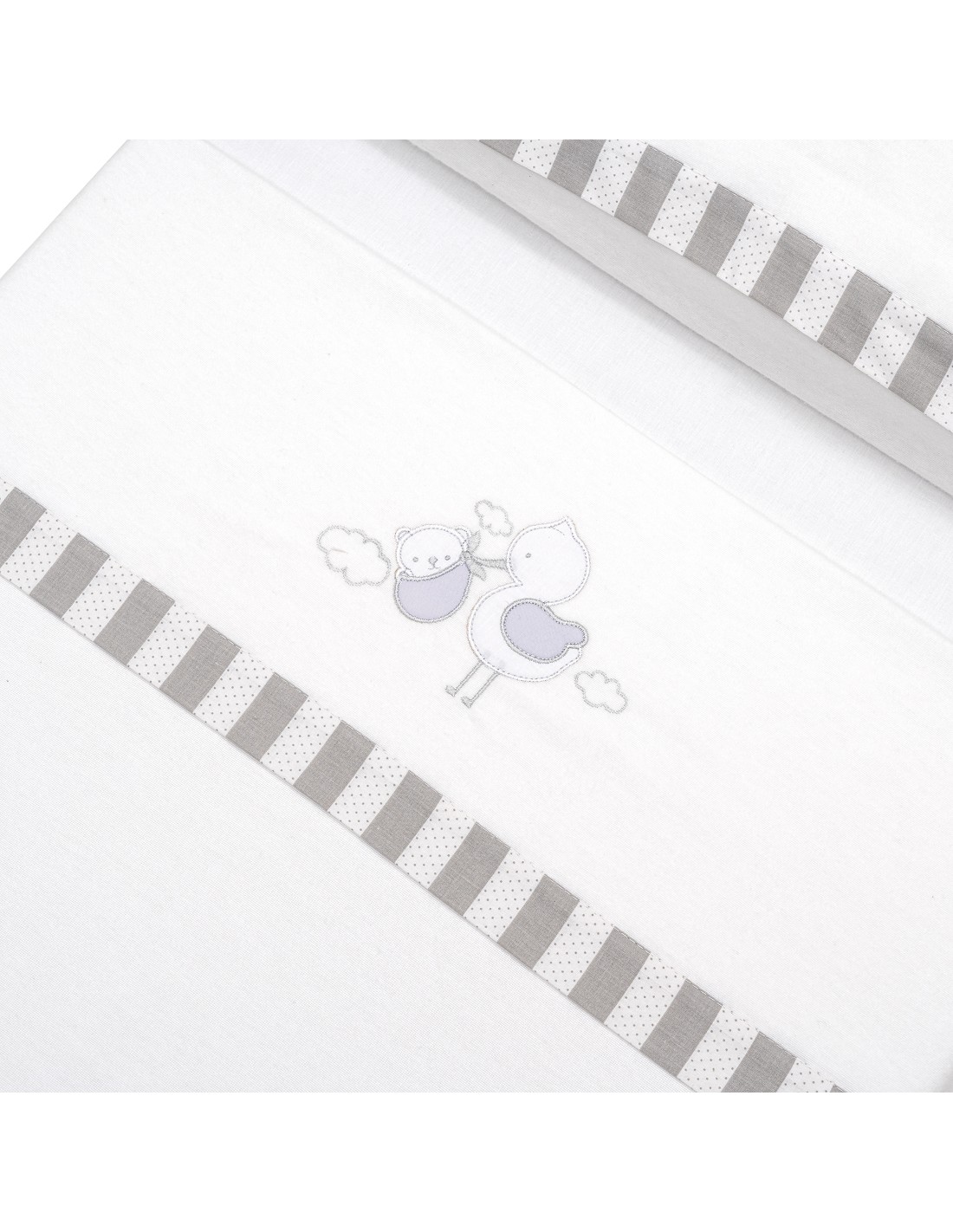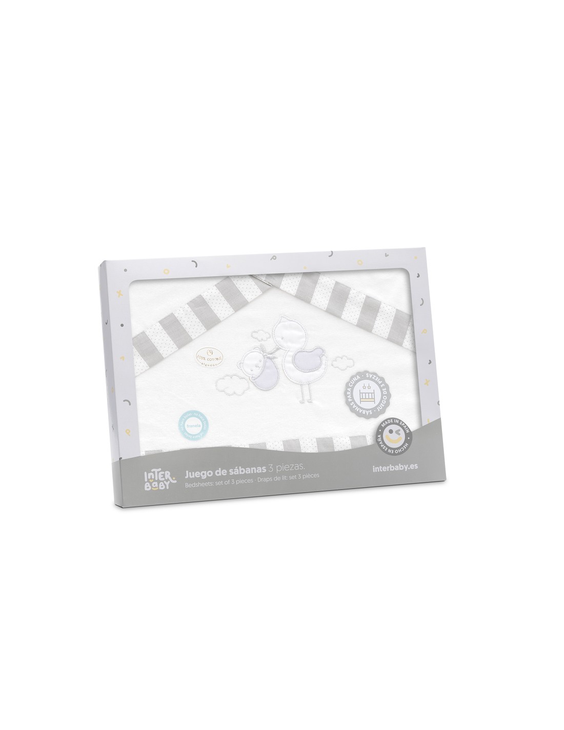 Compuesto por encimera (82 x 114 cm) , bajera (50 x 80 cm) y funda de almohada (50 x 30 cm). 100 % algodón. Lavar en frío.