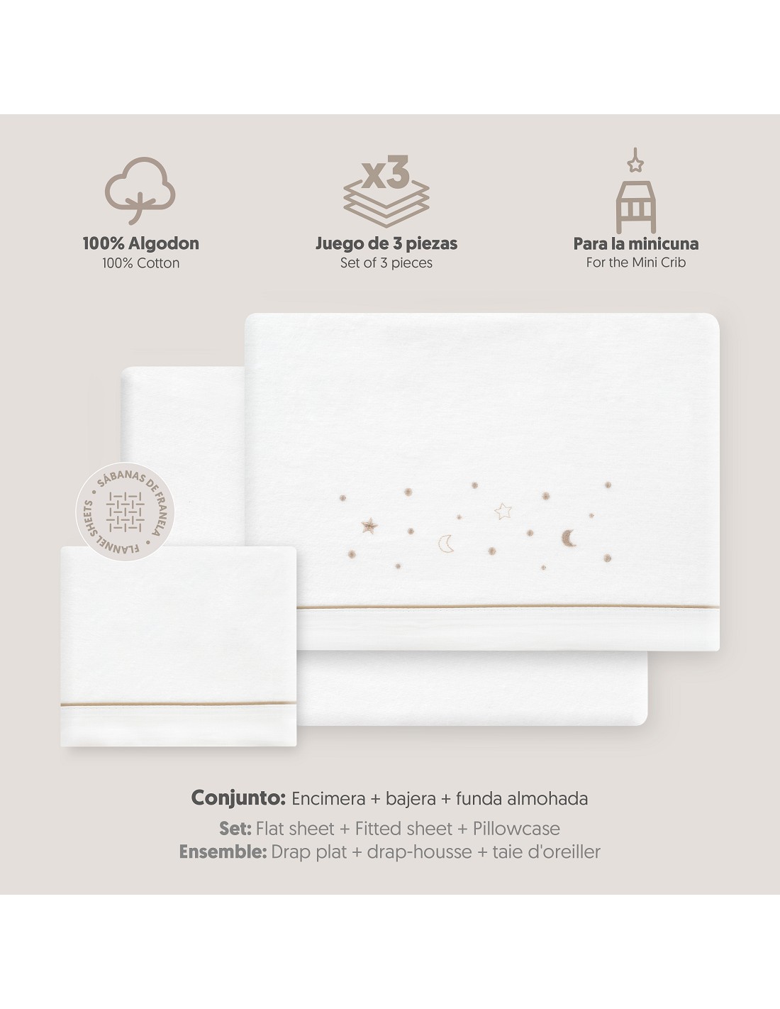 Triptico Minicuna Franela Estrellas Luna Bco/Beig