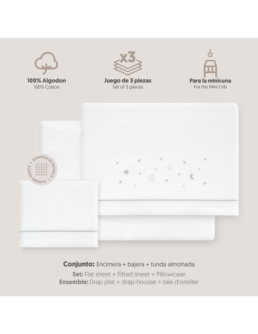 Triptico Minicuna Franela Estrellas Luna Bco/Gris