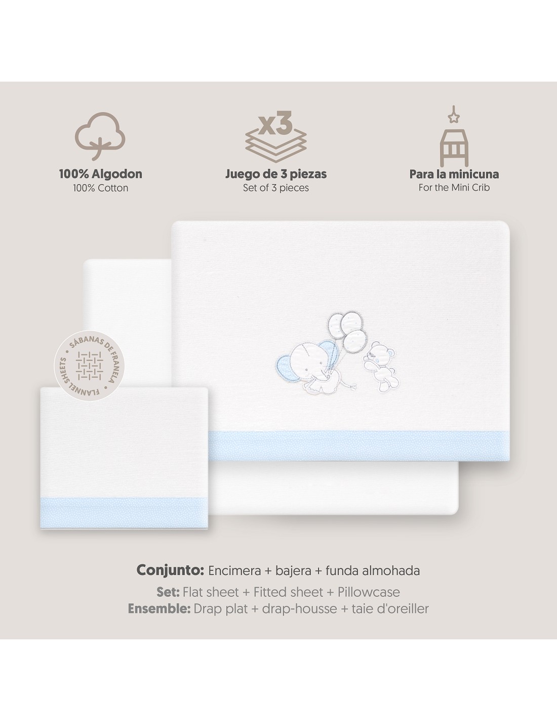 Triptico Minicuna Franela Oso Elefante Globos Bco/Azul