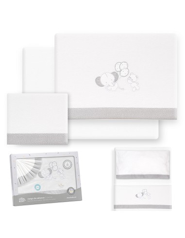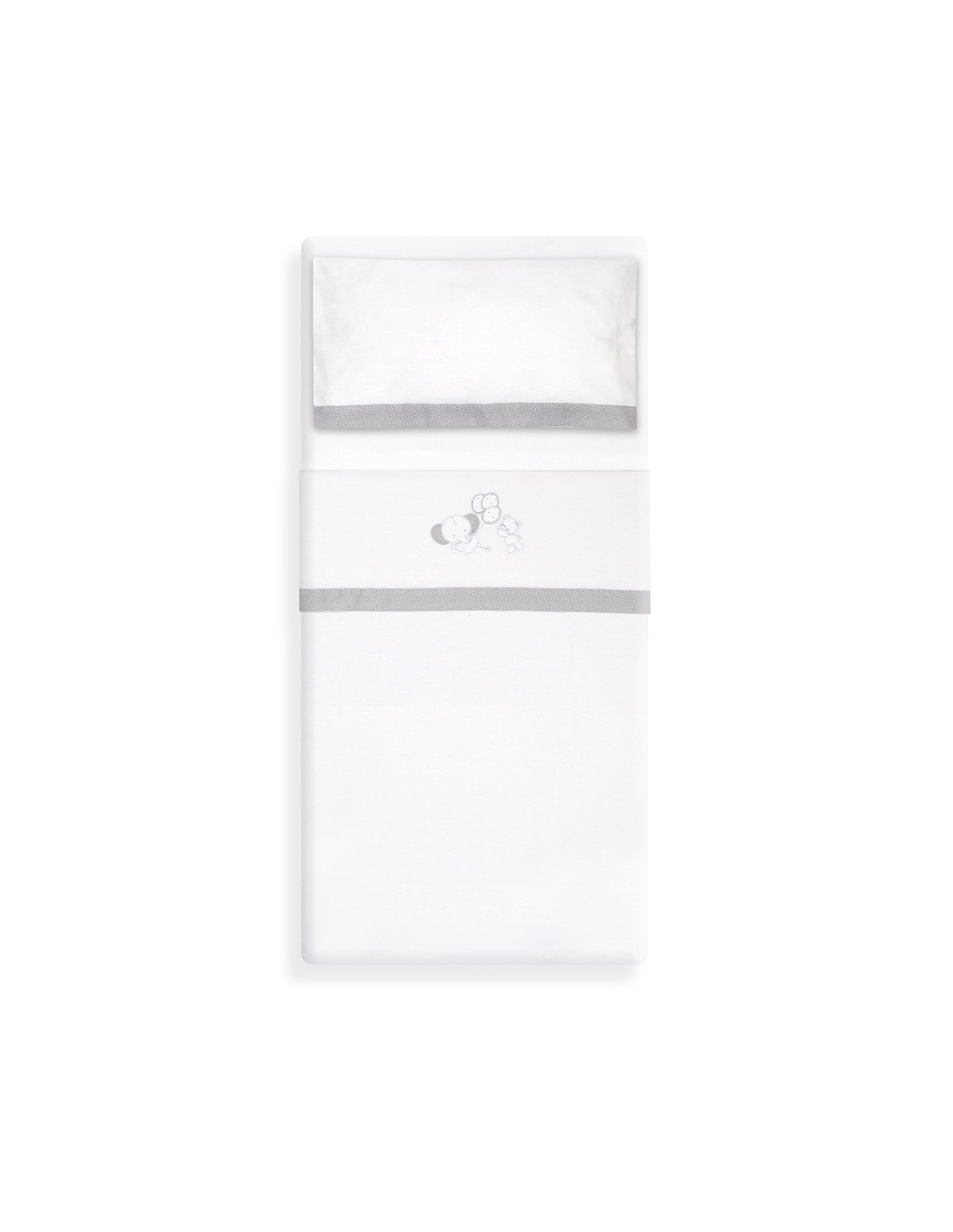 Compuesto por encimera (82 x 114 cm) , bajera (50 x 80 cm) y funda de almohada (50 x 30 cm). 100 % algodón. Lavar en frío.