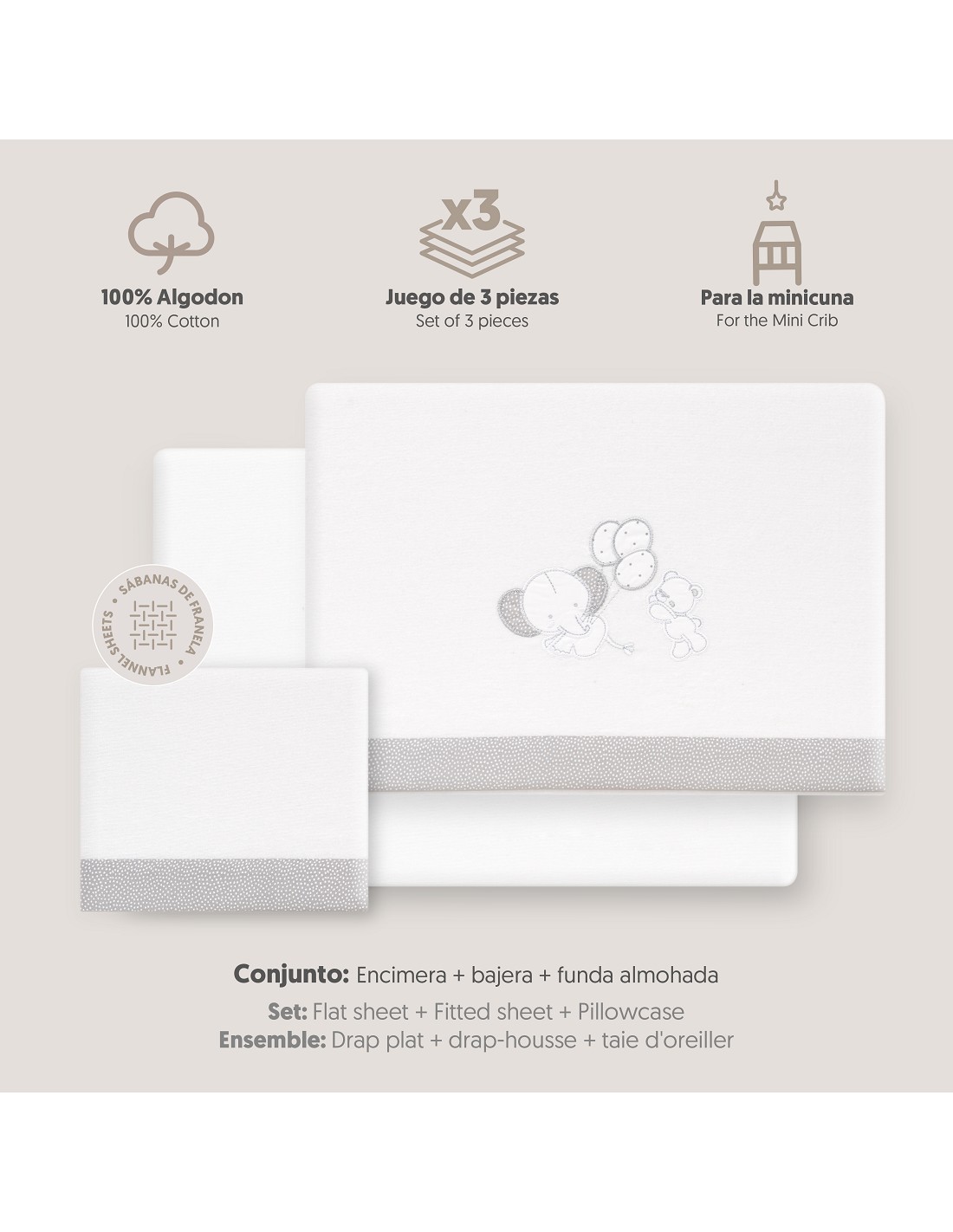 Triptico Minicuna Franela Oso Elefante Globos Bco/Gris
