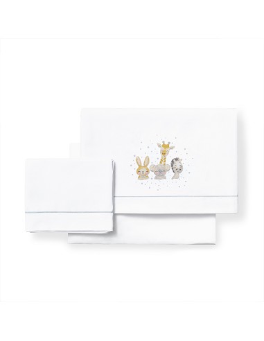 Compuesto por encimera (82 x 114 cm) , bajera (50 x 80 cm) y funda de almohada (50 x 30 cm). 100 % algodón. Lavar en frío.
