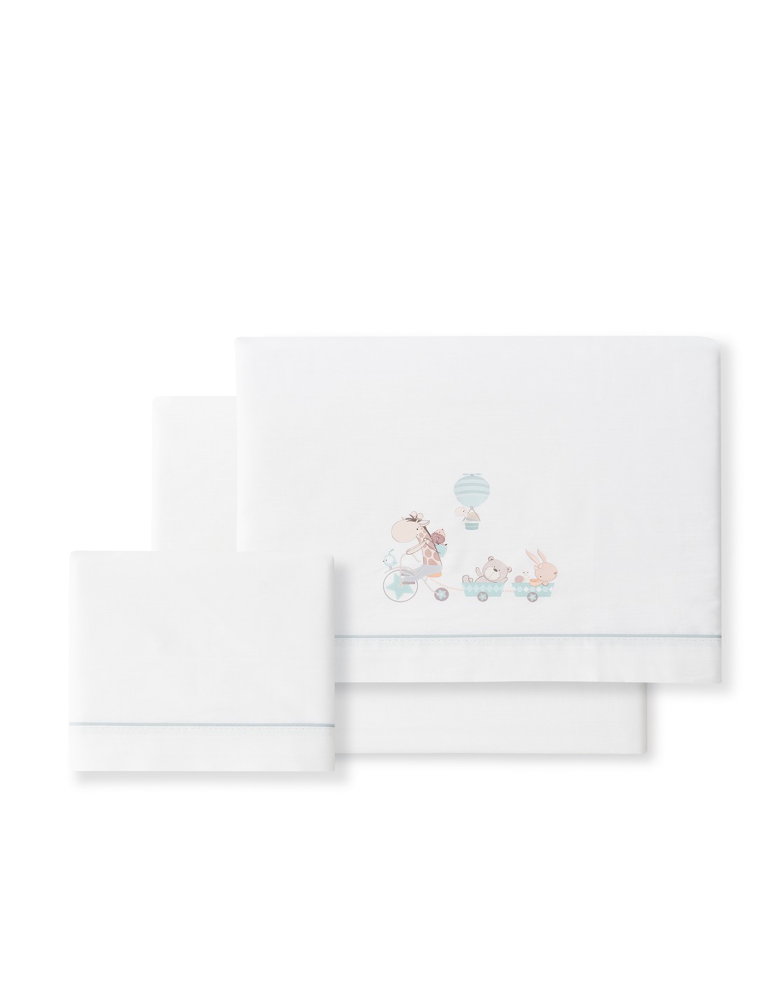 Compuesto por encimera (82 x 114 cm) , bajera (50 x 80 cm) y funda de almohada (50 x 30 cm). 100 % algodón. Lavar en frío.