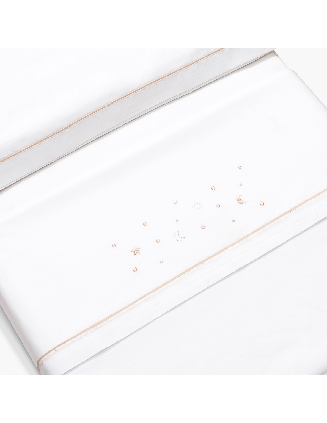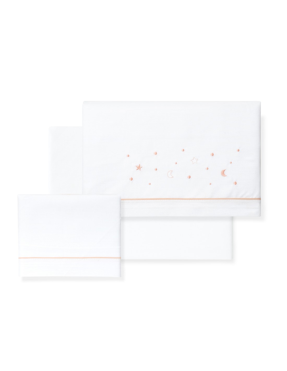 Compuesto por encimera (82 x 114 cm) , bajera (50 x 80 cm) y funda de almohada (50 x 30 cm). 100 % algodón. Lavar en frío.