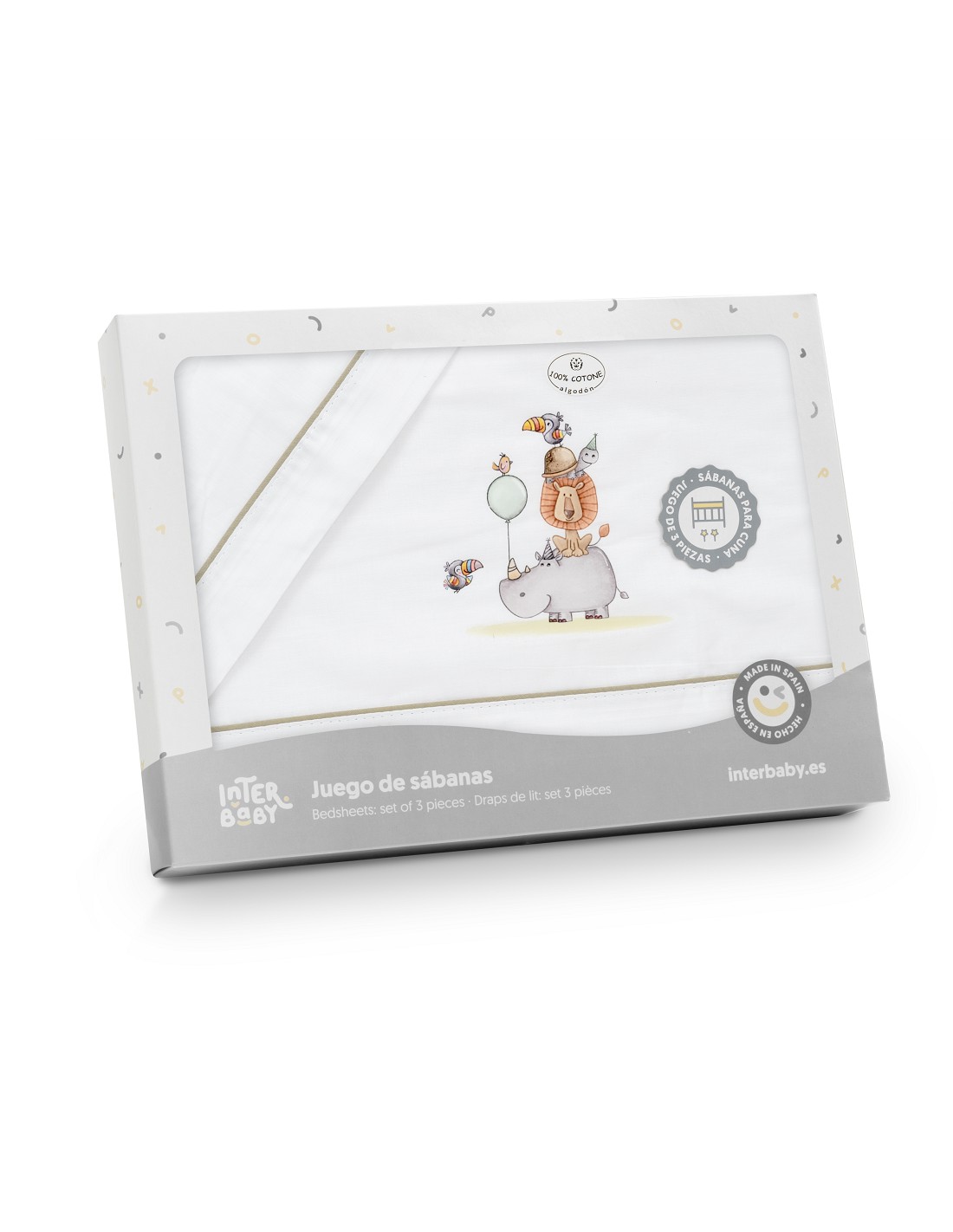 Compuesto por encimera (82 x 114 cm) , bajera (50 x 80 cm) y funda de almohada (50 x 30 cm). 100 % algodón. Lavar en frío.