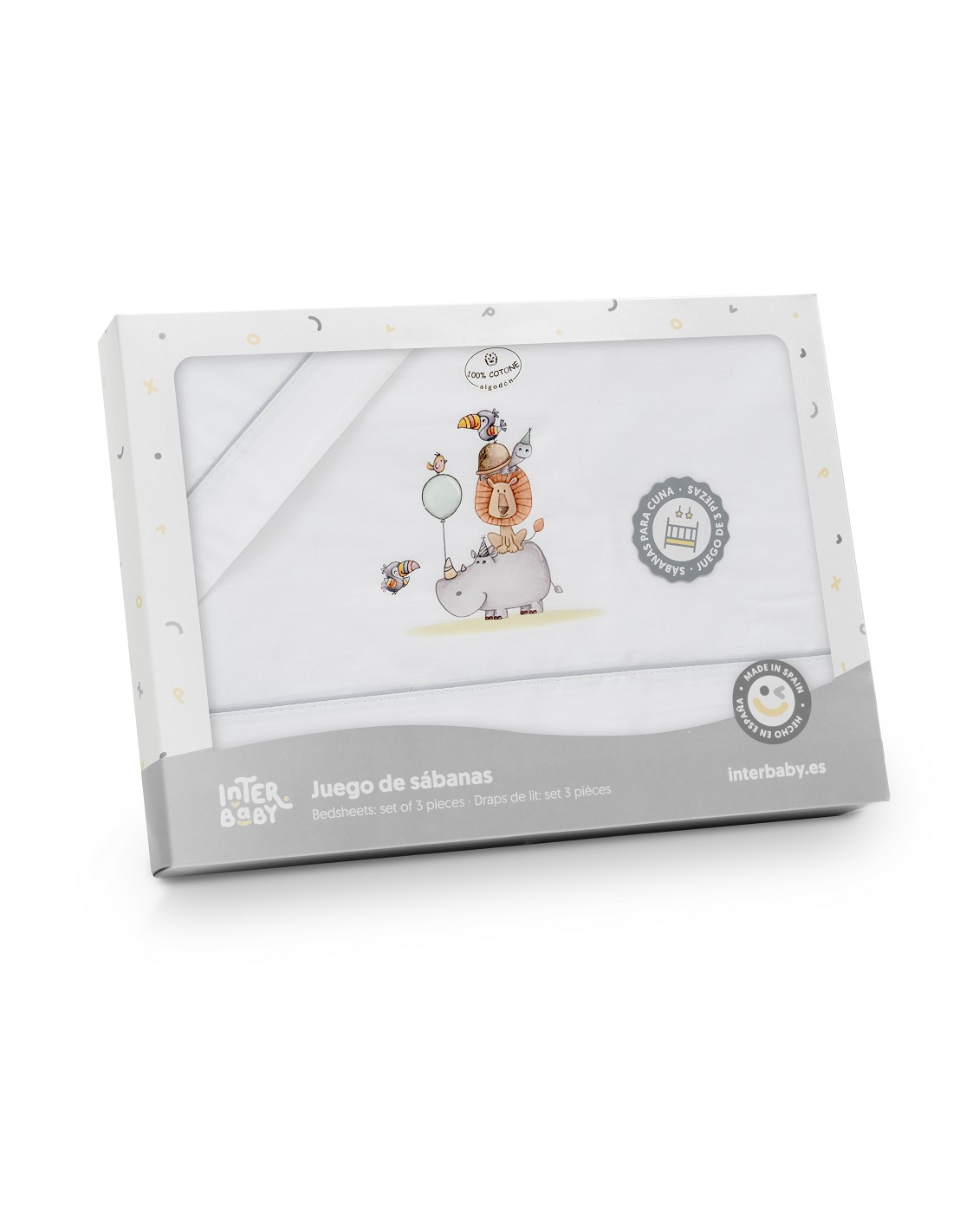 Compuesto por encimera (82 x 114 cm) , bajera (50 x 80 cm) y funda de almohada (50 x 30 cm). 100 % algodón. Lavar en frío.