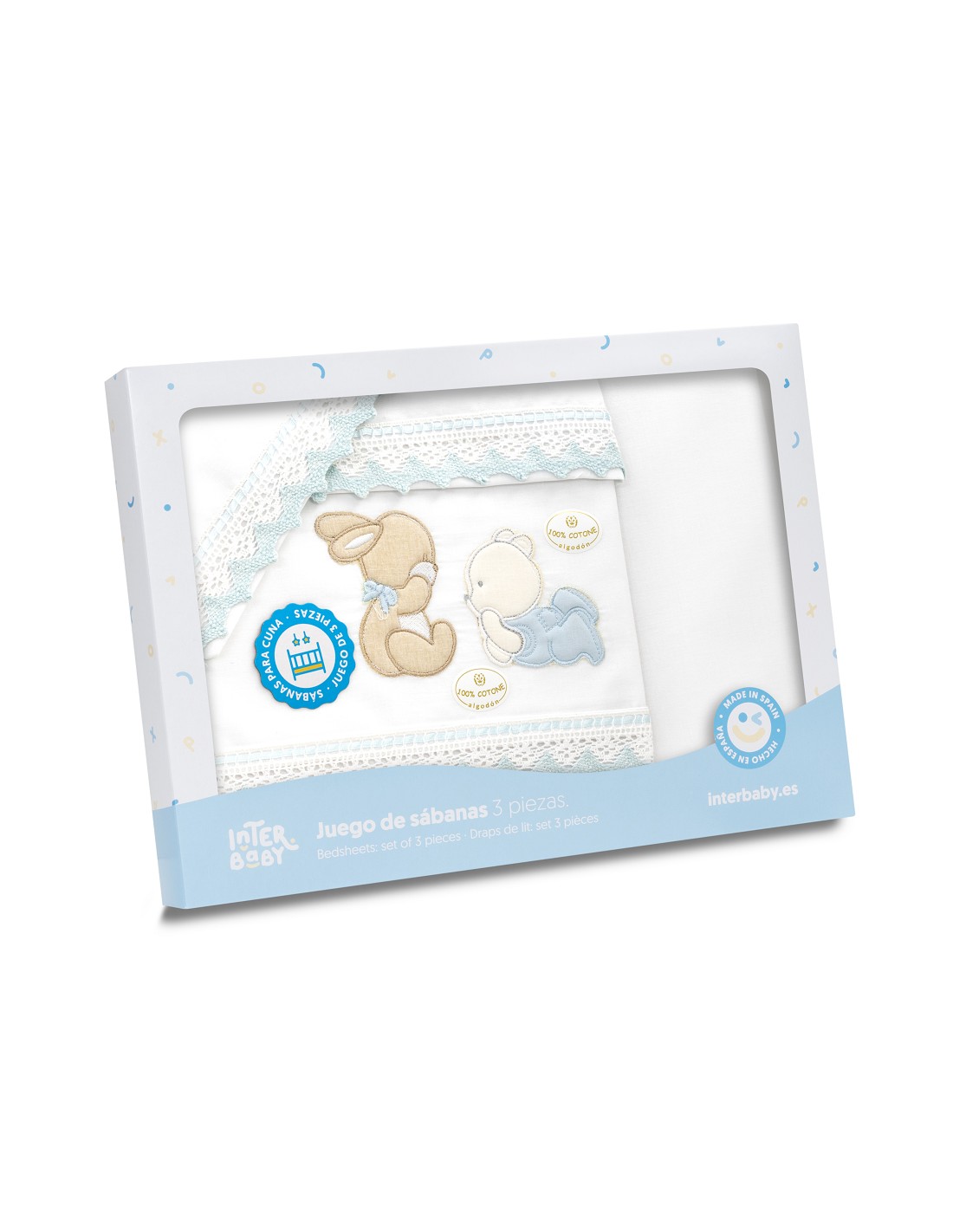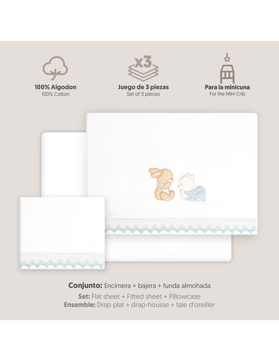 Triptico Minicuna Guipur Oso Tumbado Conejito Bco/Azul