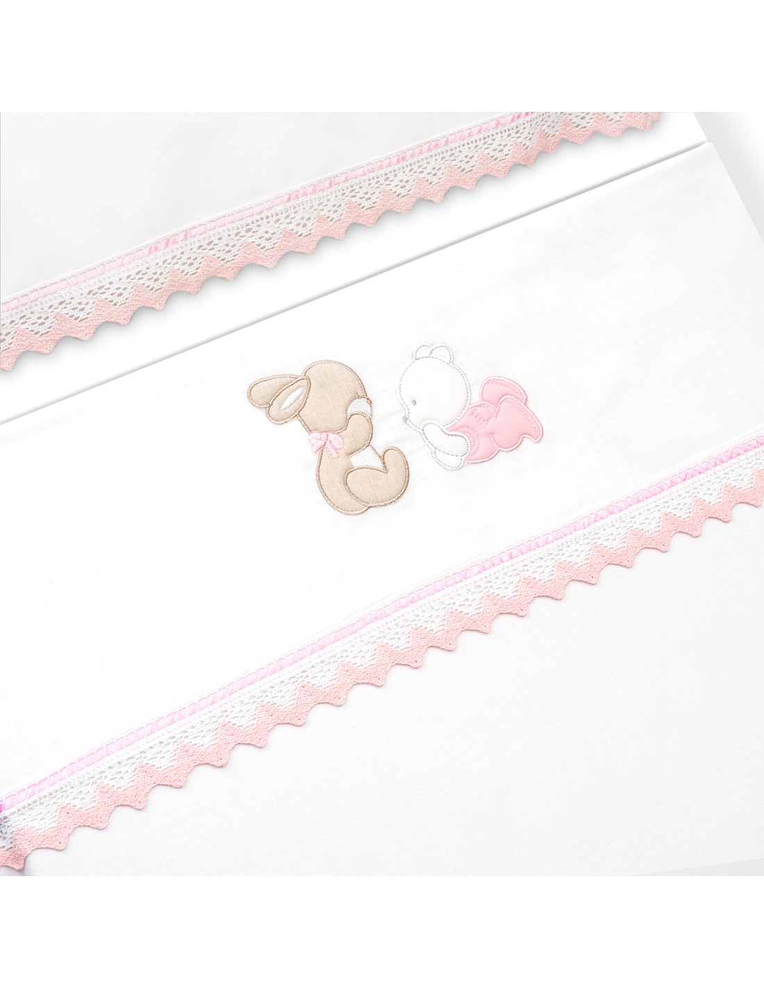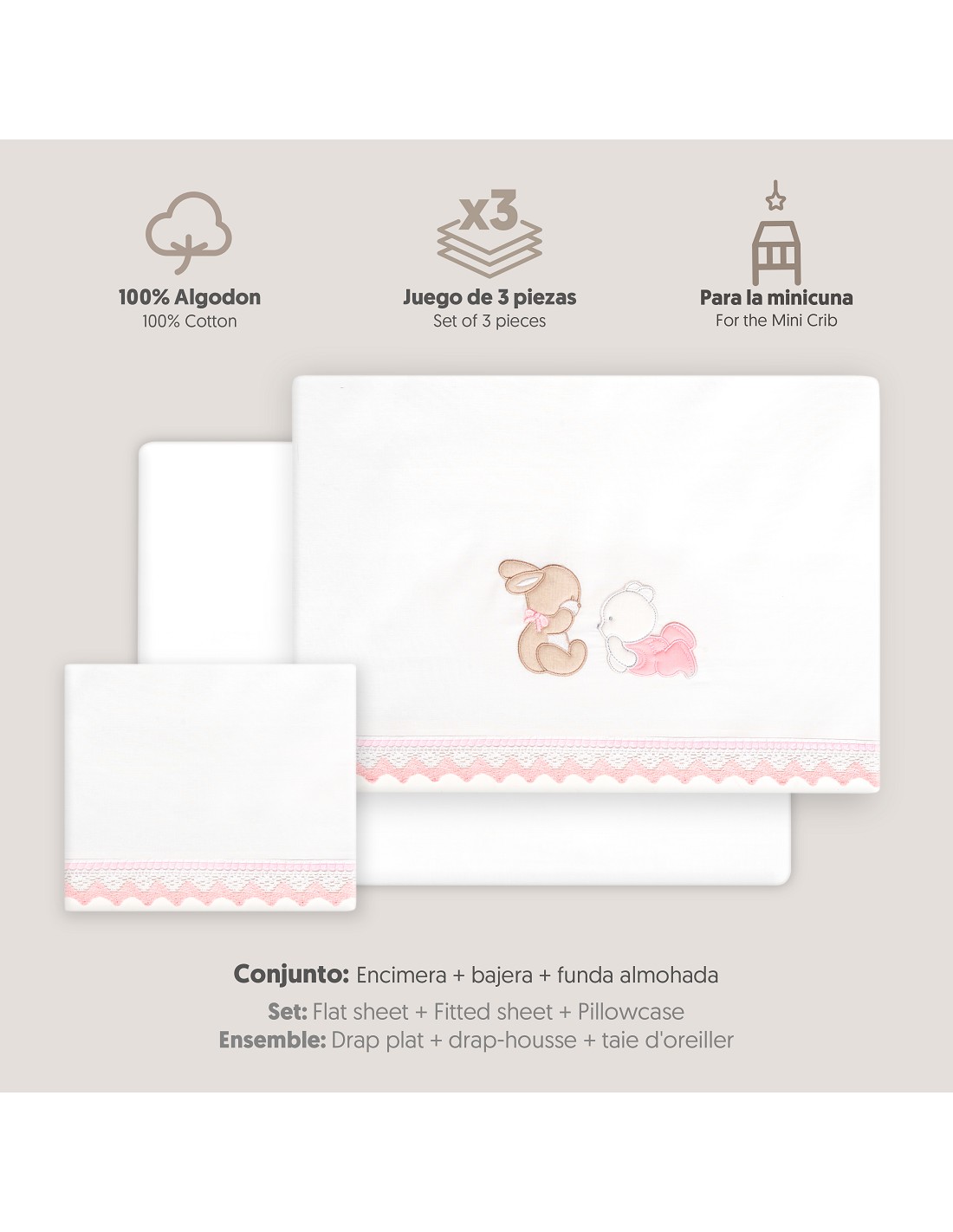 Triptico Minicuna Guipur Oso Tumbado Conejito Bco/Rosa