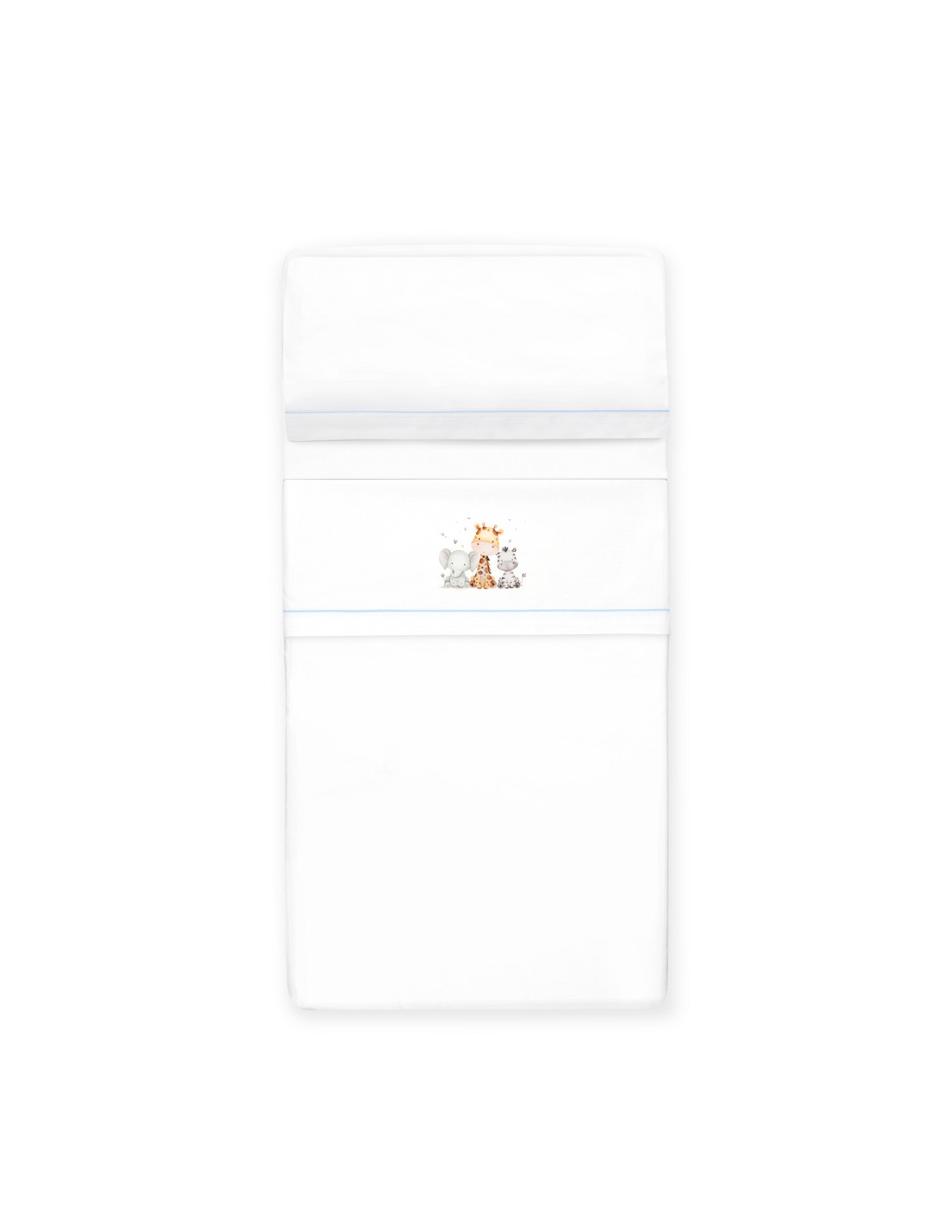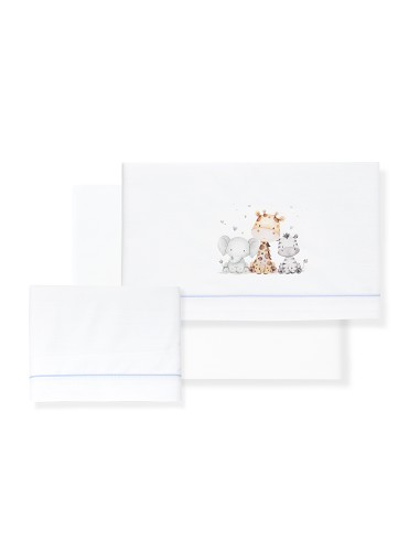 Compuesto por encimera (72 X 114cm) , bajera (40 X 80 cm) y funda de almohada (40 x 25 cm). 100 % algodón. Lavar en frío.