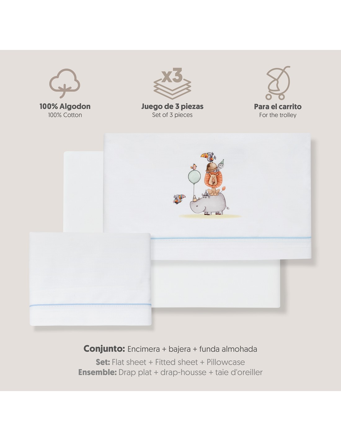 Triptico Coche Estampado Rino-Leon Bco/Azul