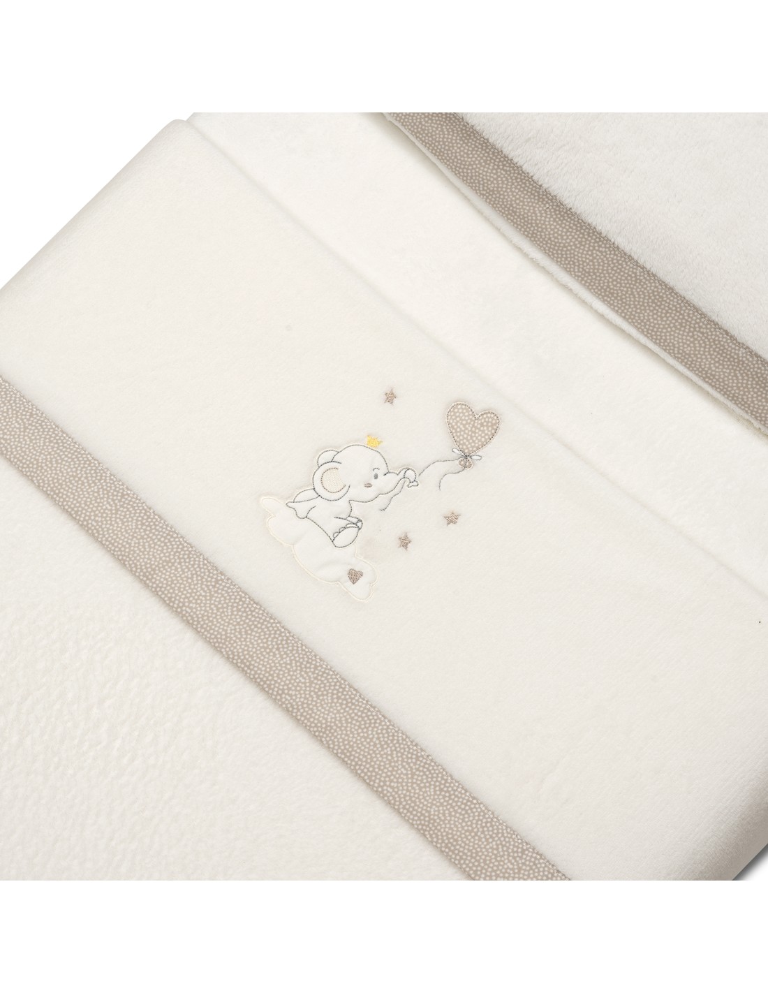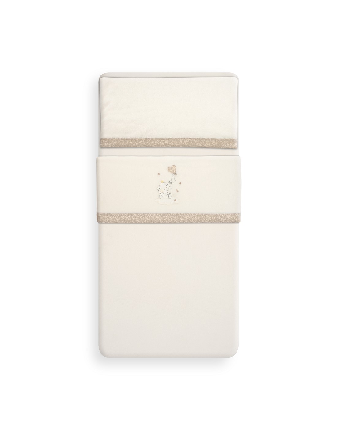 Compuesto por encimera (103 x 150 cm) , bajera (60 x 120 cm) y funda de almohada (60 x 30 cm). 100 % POLIESTER. Lavar en frío.