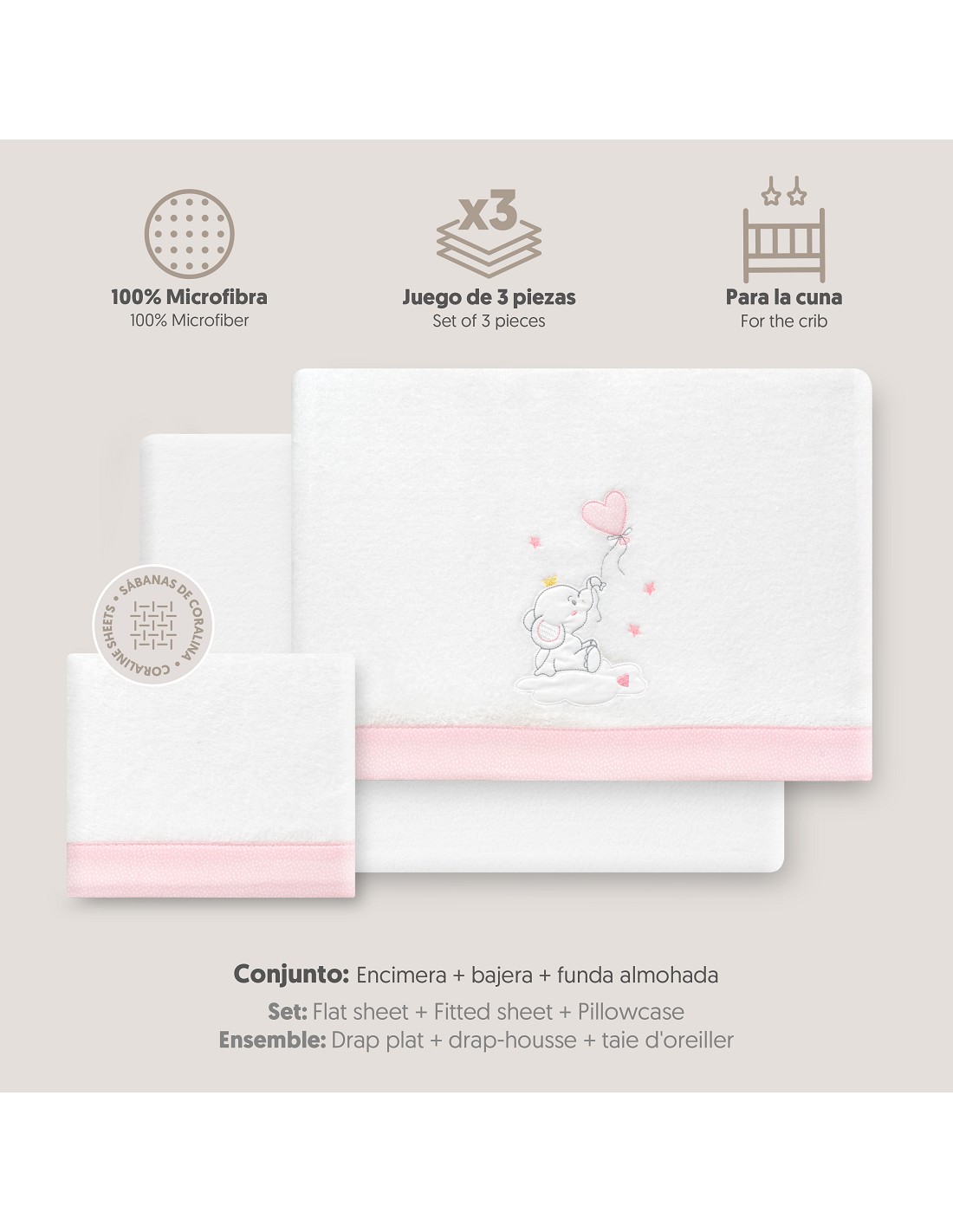Triptico Cuna Coralina Elefante Globo Corazon Bco/Rosa