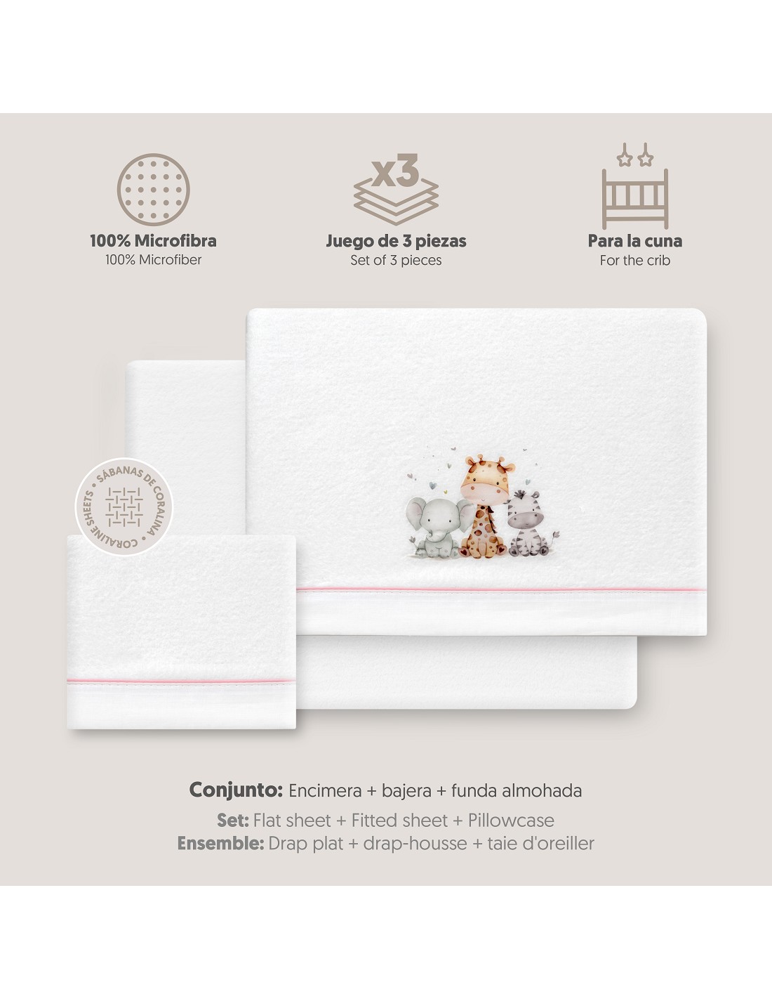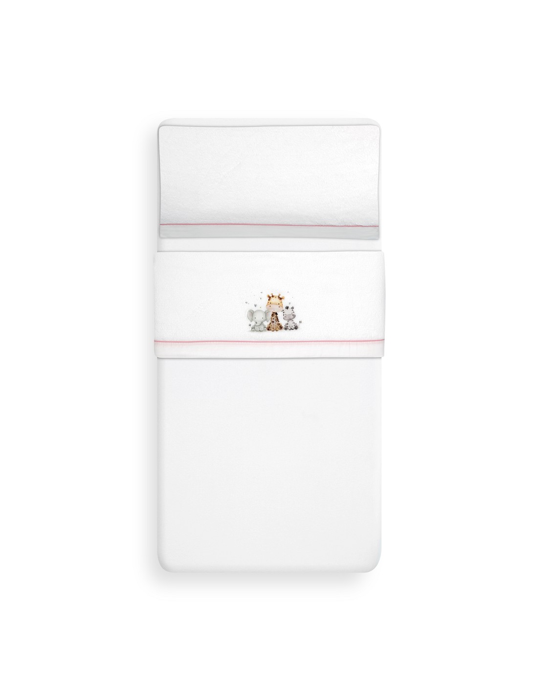 Triptico Cuna Coralina Estampado Jirafa Elefante Bco/Rosa
