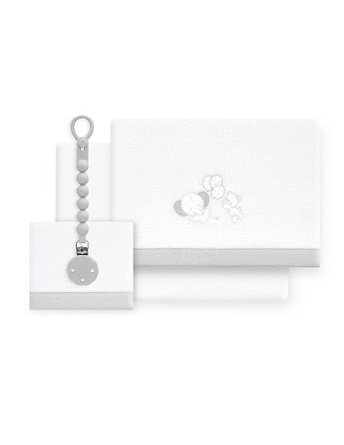 Triptico Cuna Coralina Oso Elefante Globos +Broche Bco/Rosa