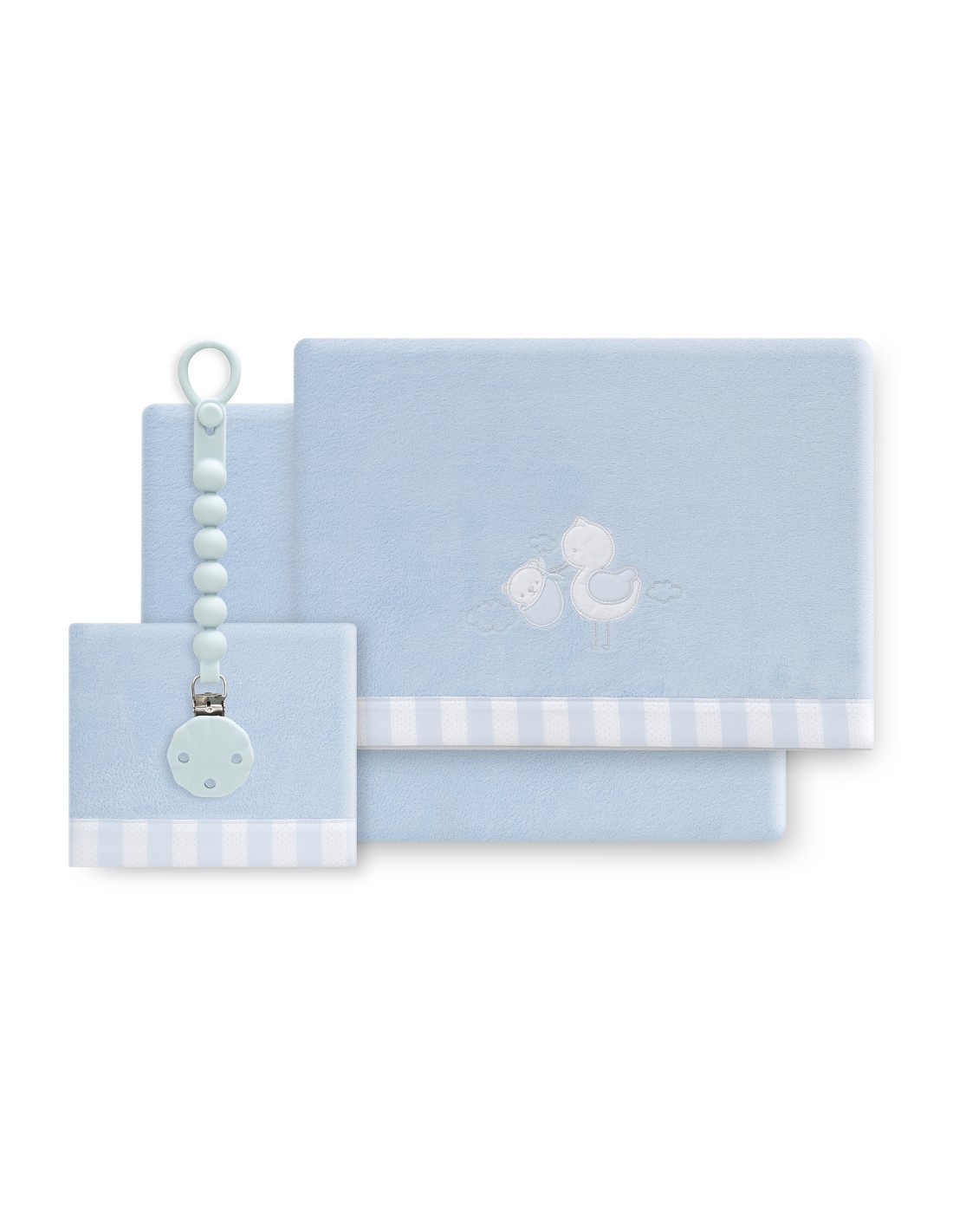 Triptico Cuna Coralina Cigueña Oso + Broche Azul