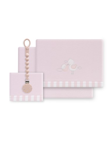 Triptico Cuna Coralina Cigueña Oso + Broche Rosa