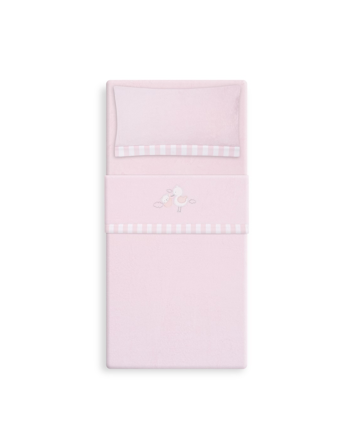 Compuesto por encimera (103 x 150 cm) , bajera (60 x 120 cm) y funda de almohada (60 x 30 cm). 100 % POLIESTER. Lavar en frío.