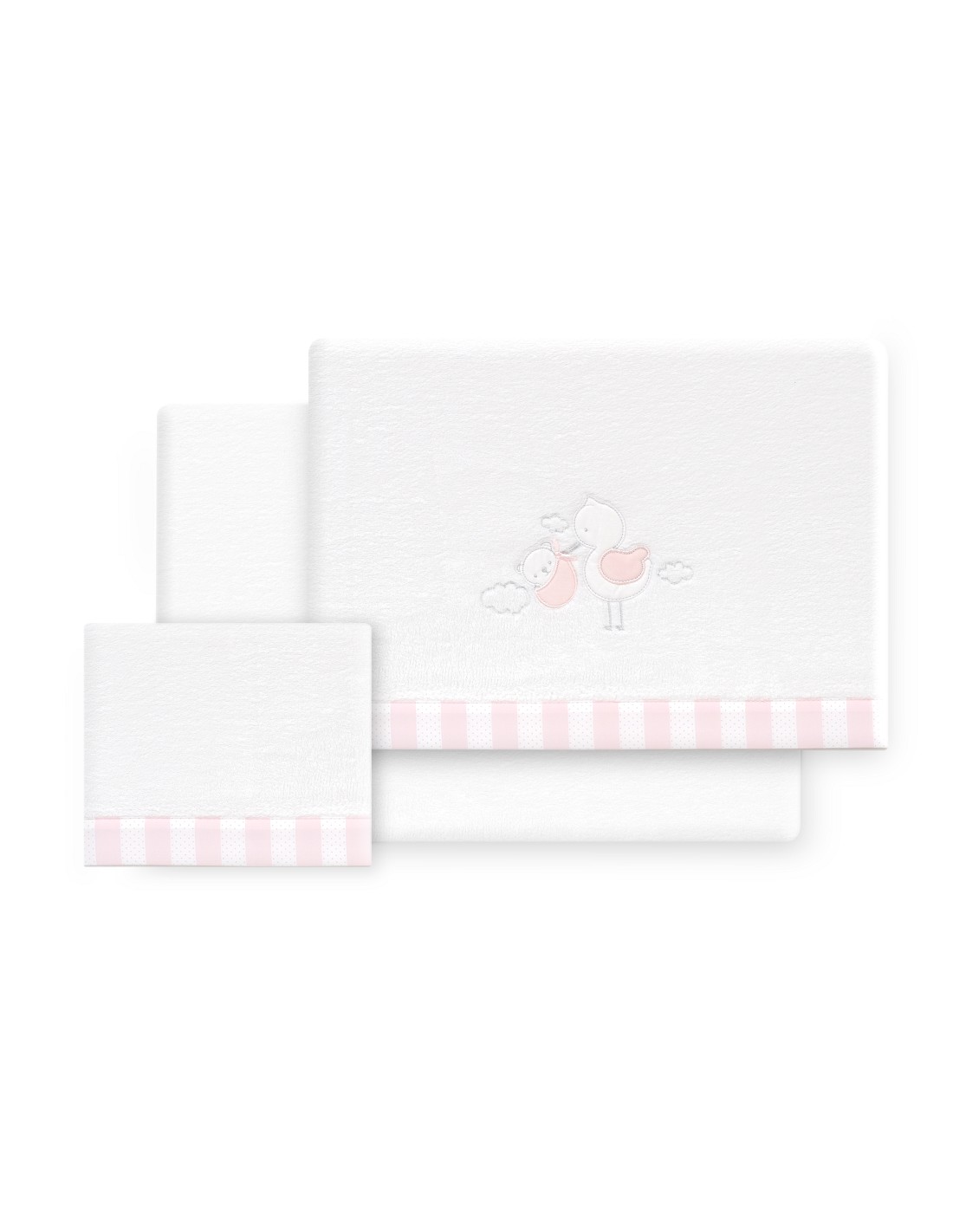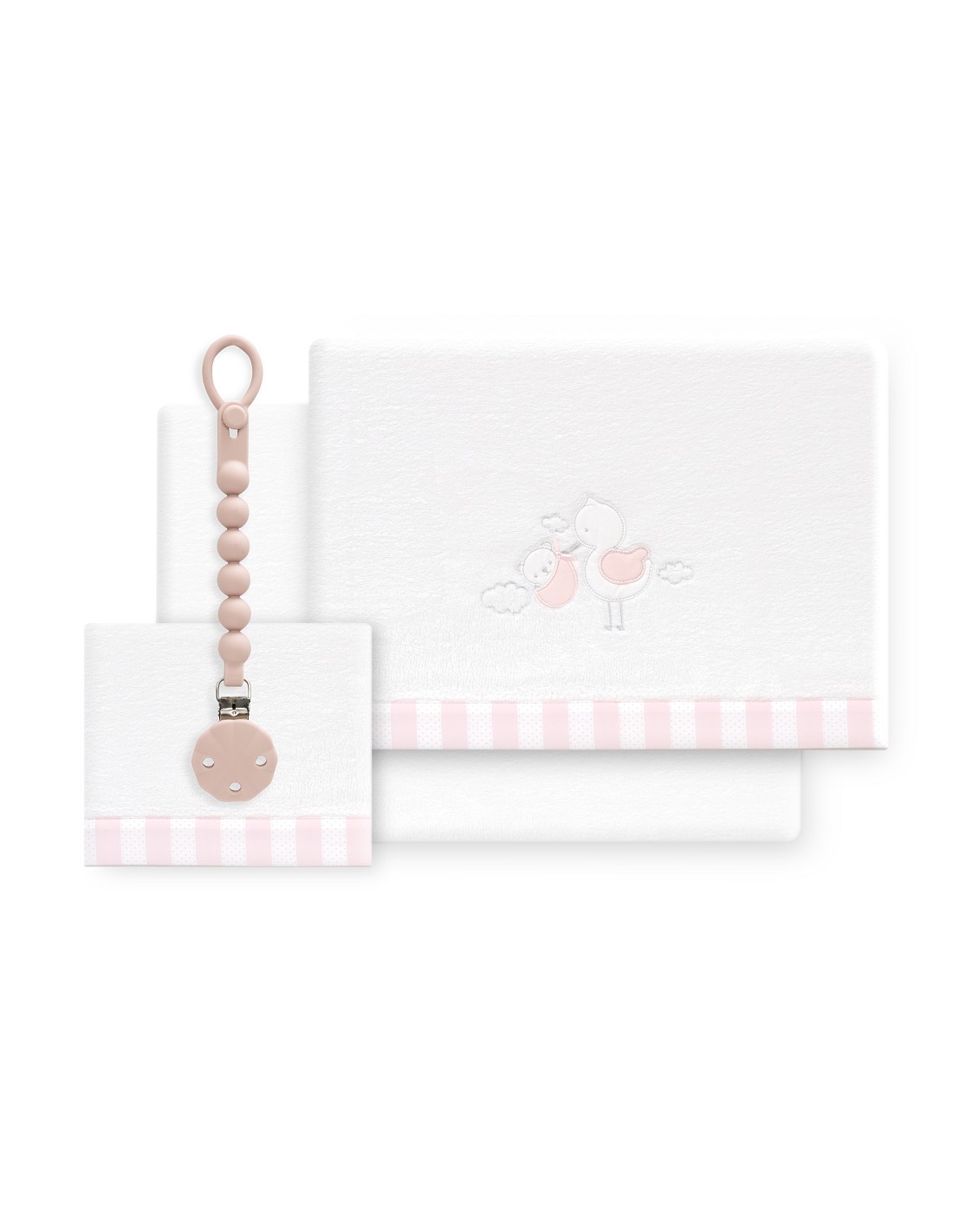 Triptico Cuna Coralina Cigueña Oso + Broche Bco/Rosa