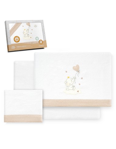 Triptico Cuna Franela Elefante Globo Corazon Bco/Beig