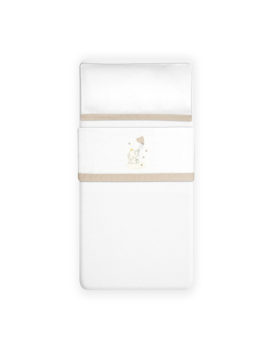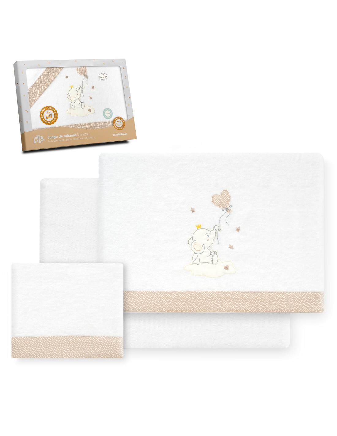 Compuesto por encimera (103 x 150 cm) , bajera (60 x 120 cm) y funda de almohada (60 x 30 cm). 100 % algodón. Lavar en frío.