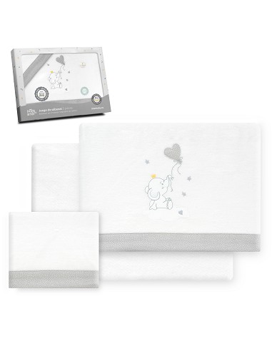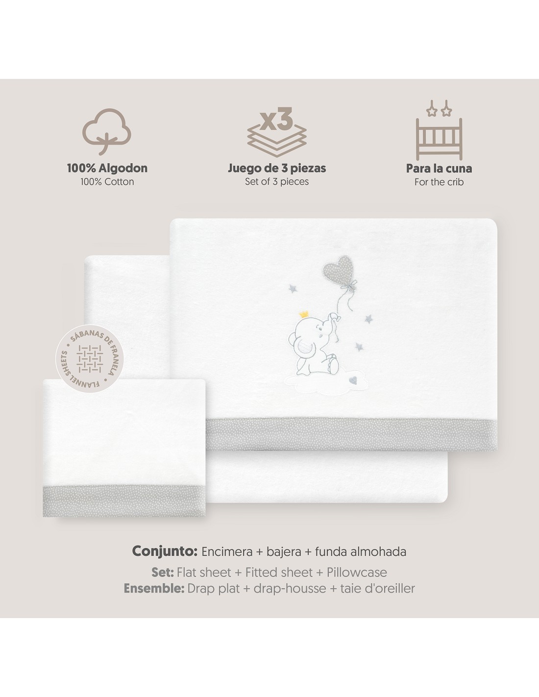 Triptico Cuna Franela Elefante Globo Corazon Bco/Gris