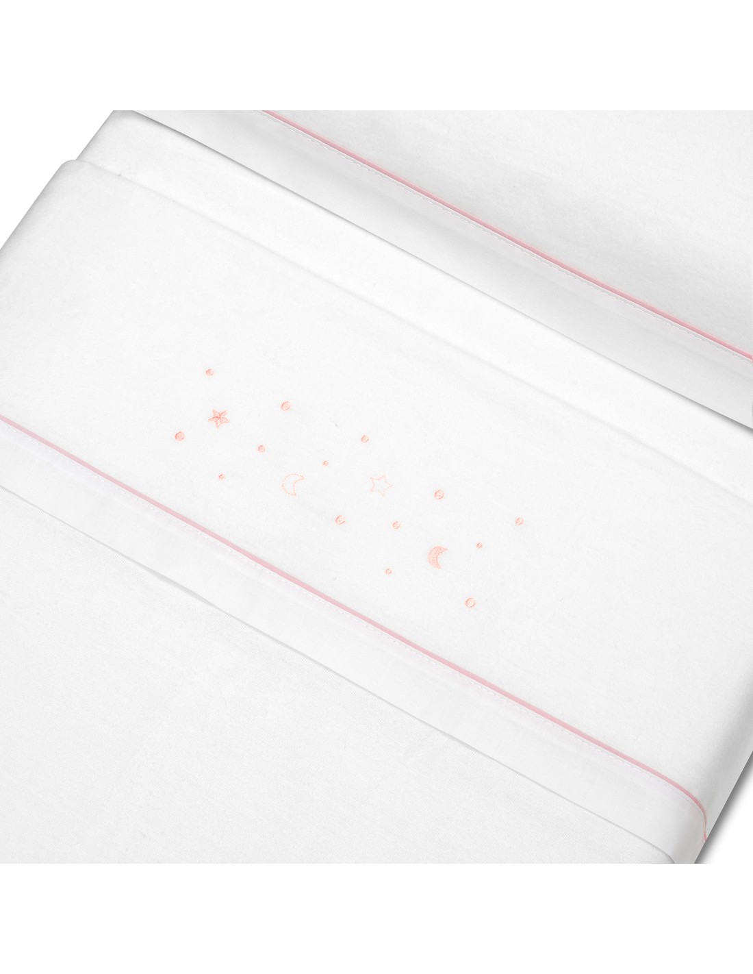 Triptico Cuna Franela Estrellas Luna Bco/Rosa