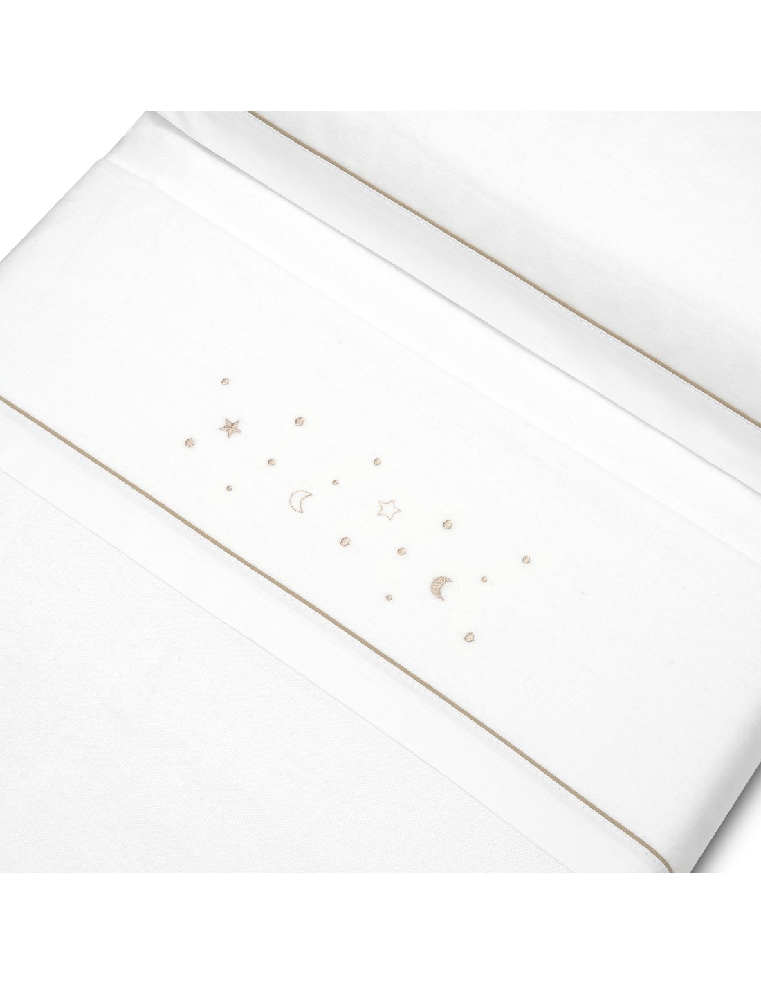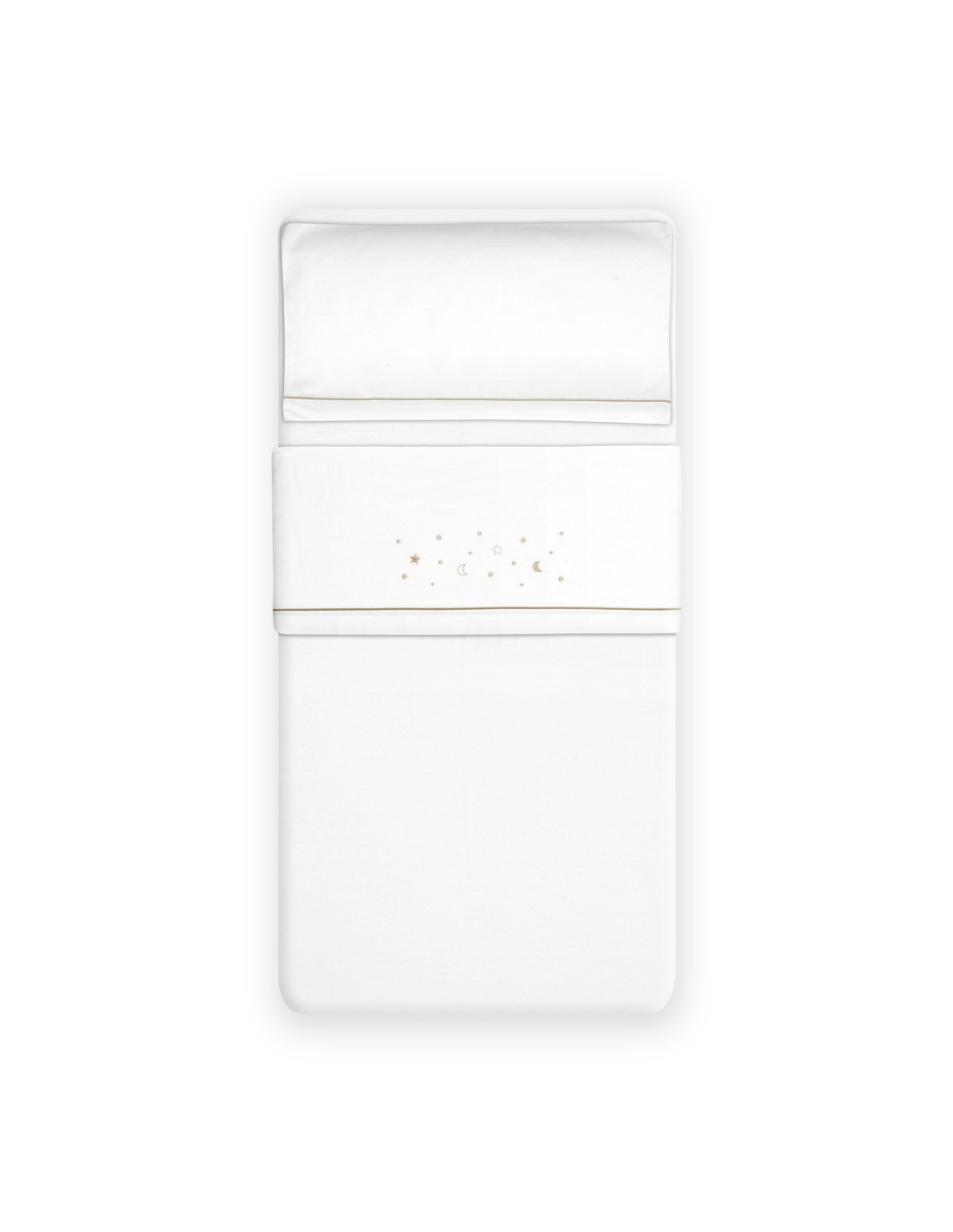 Compuesto por encimera (103 x 150 cm) , bajera (60 x 120 cm) y funda de almohada (60 x 30 cm). 100 % algodón. Lavar en frío.
