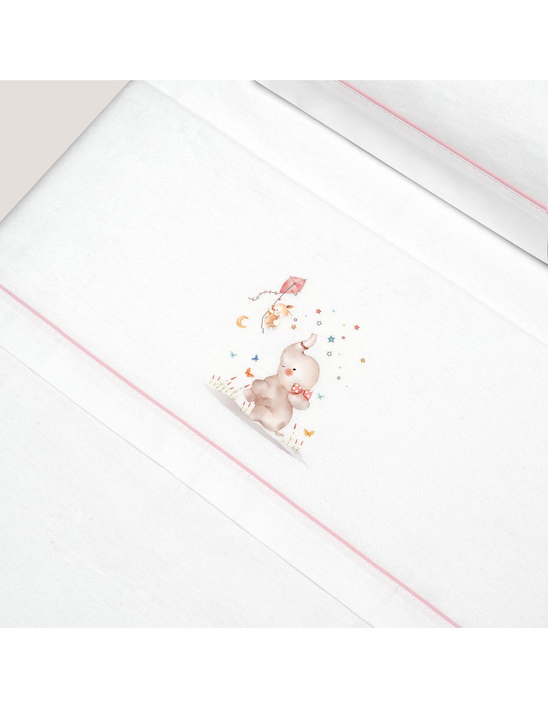 Triptico Cuna Franela Mod Elefante Bco/Rosa