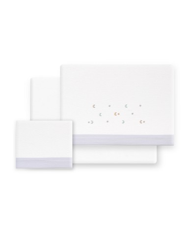 Compuesto por encimera (103 x 150 cm) , bajera (60 x 120 cm) y funda de almohada (60 x 30 cm). 100 % algodón. Lavar en frío.