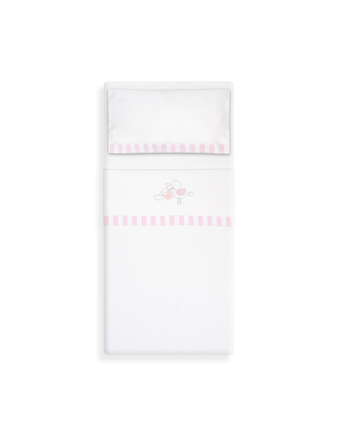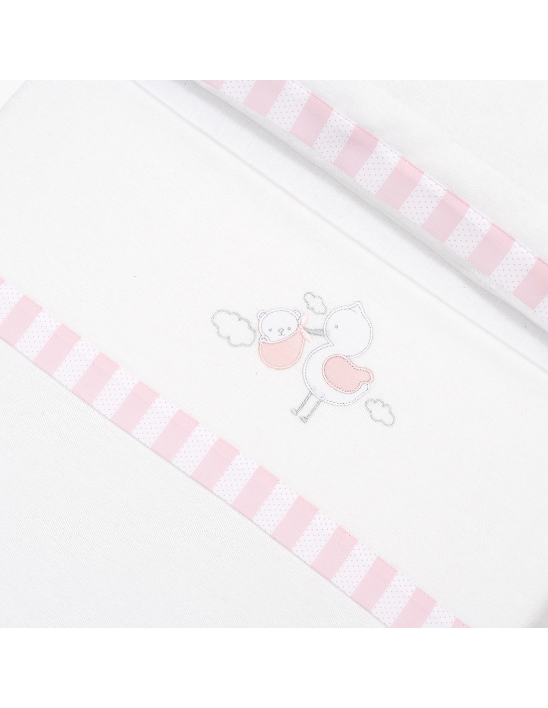Triptico Cuna Franela Cigueña Oso Bco/Rosa