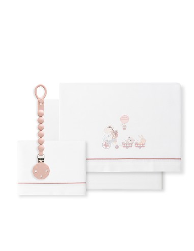 Compuesto por encimera (103 x 150 cm) , bajera (60 x 120 cm) y funda de almohada (60 x 30 cm). 100 % algodón. Lavar en frío.