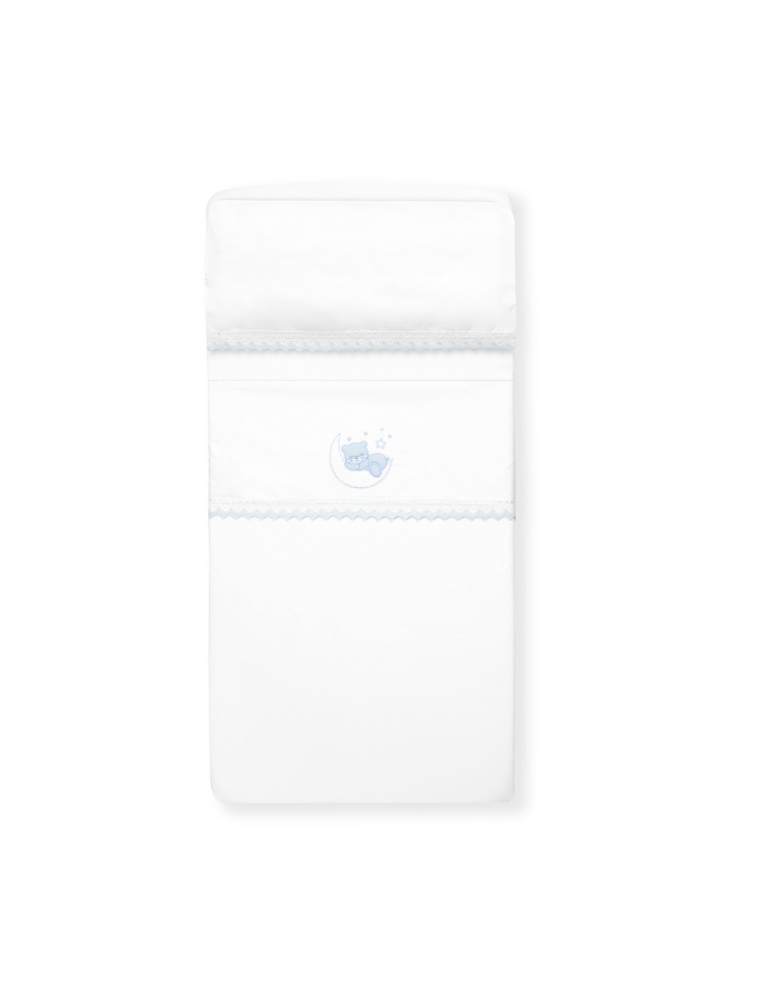 Triptico Cuna Oso Luna Guipur+Broche Bco/Azul
