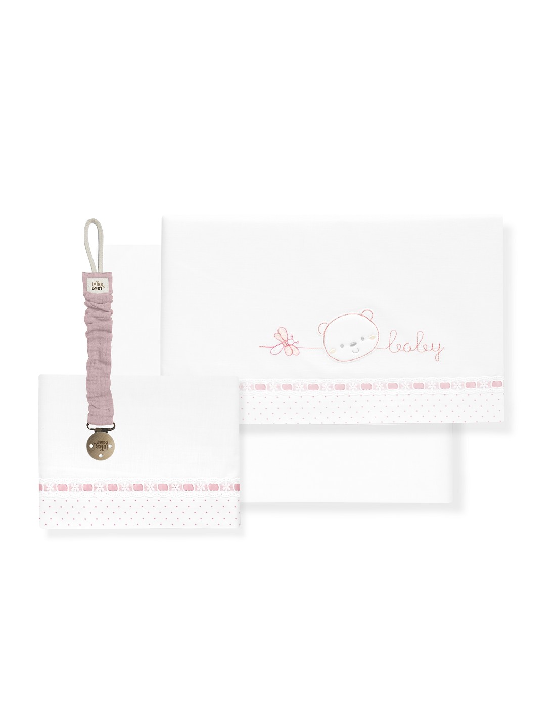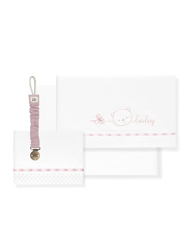 Triptico Cuna Cara Osito Baby Pasacinta + Broche Bco/Rosa
