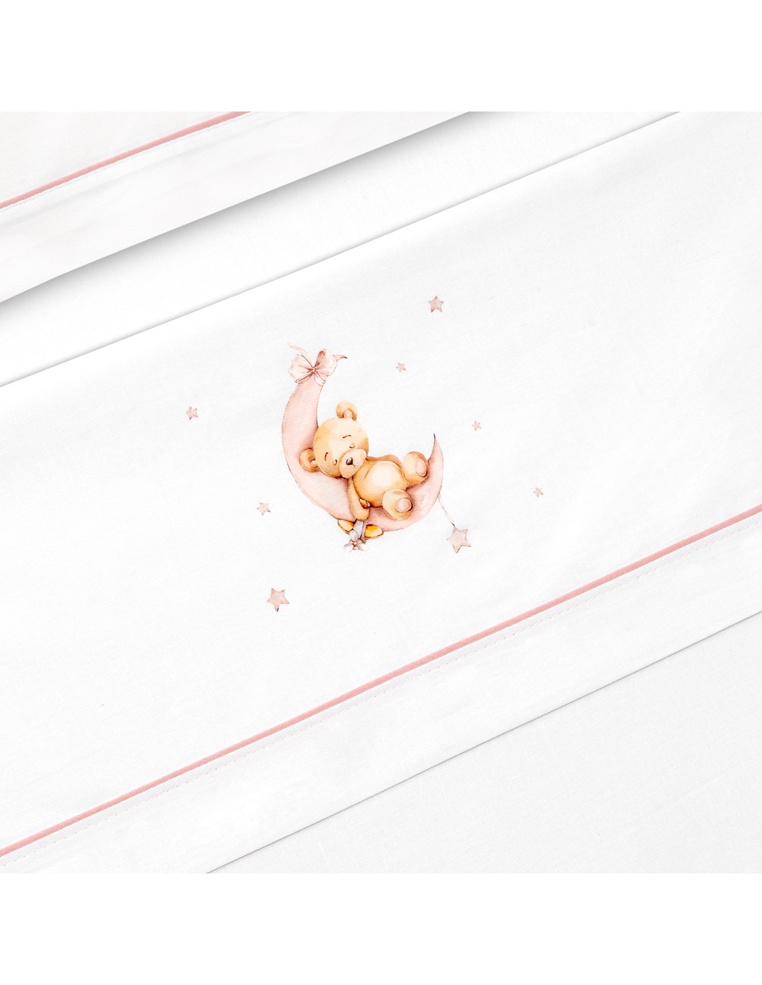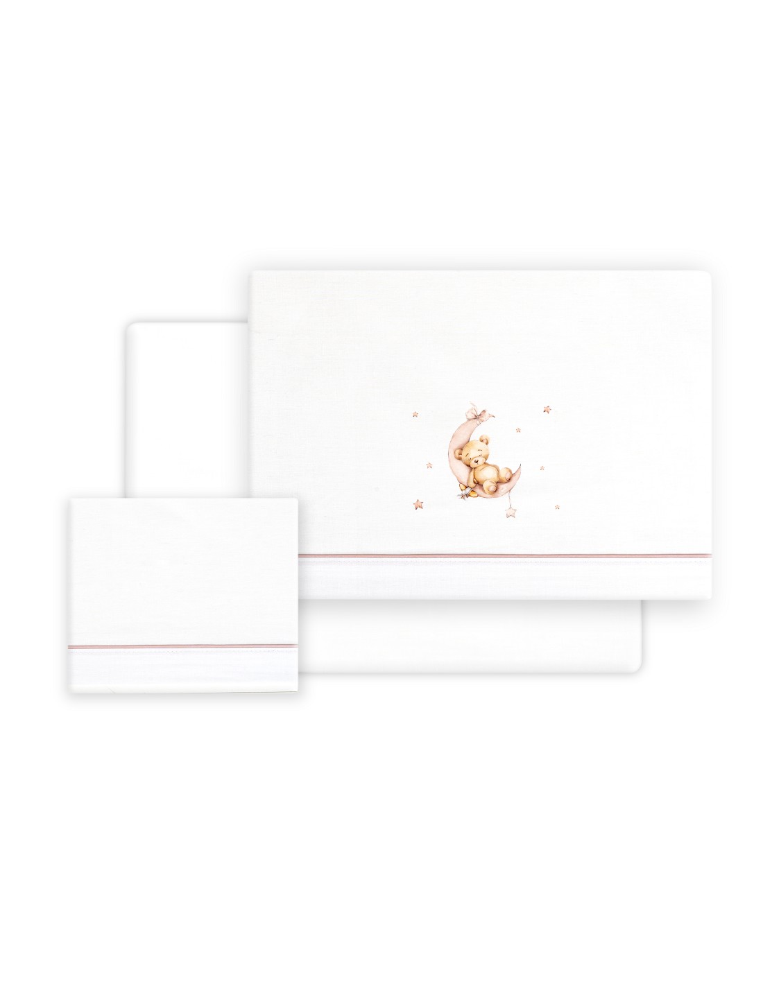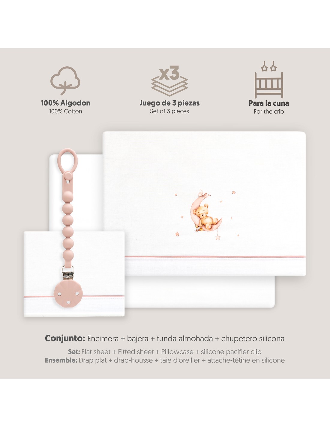 Triptico Cuna Estampado Oso Luna Estrellas + Broche Bco/Rosa