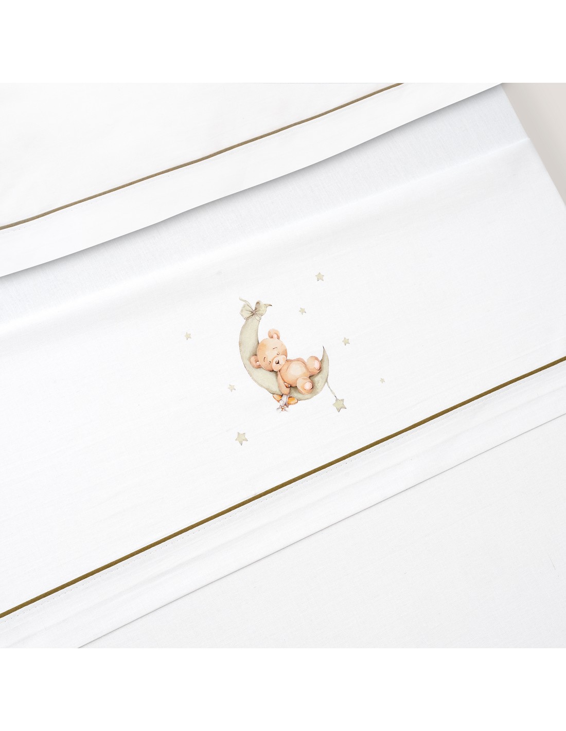 Triptico Cuna Estampado Oso Luna Estrellas + Broche Bco/Verde
