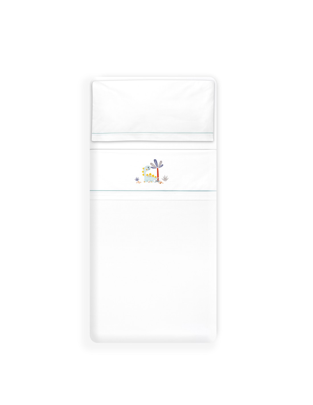 Compuesto por encimera (103 x 150 cm) , bajera (60 x 120 cm) y funda de almohada (60 x 30 cm). 100 % algodón. Lavar en frío.