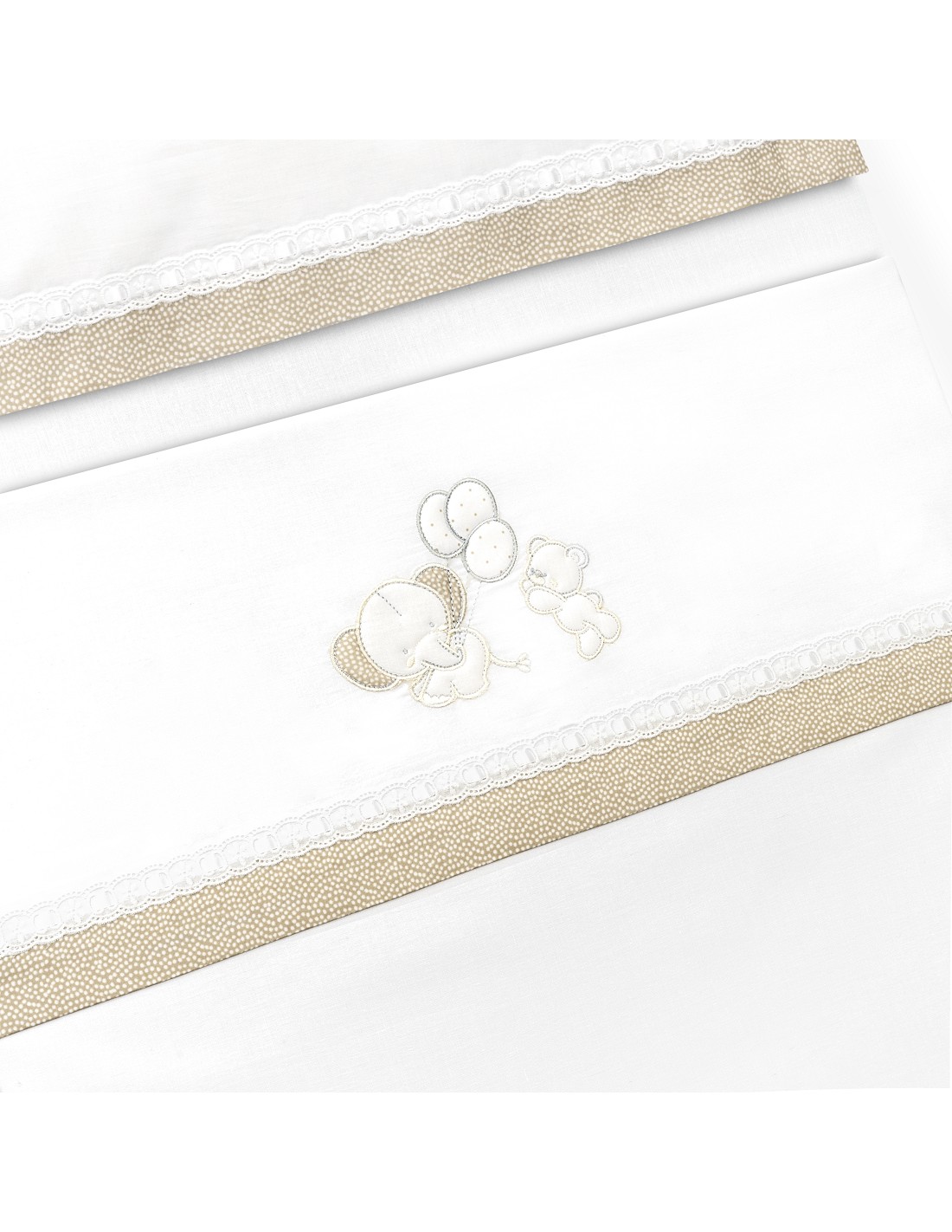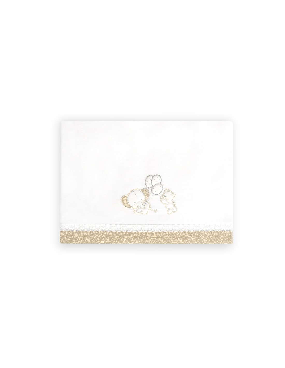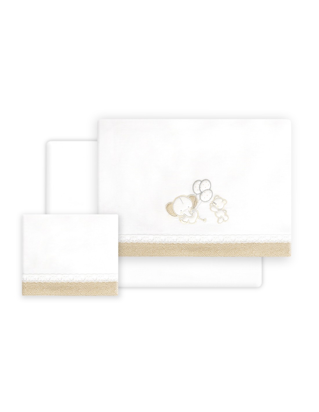 Compuesto por encimera (103 x 150 cm) , bajera (60 x 120 cm) y funda de almohada (60 x 30 cm). 100 % algodón. Lavar en frío.