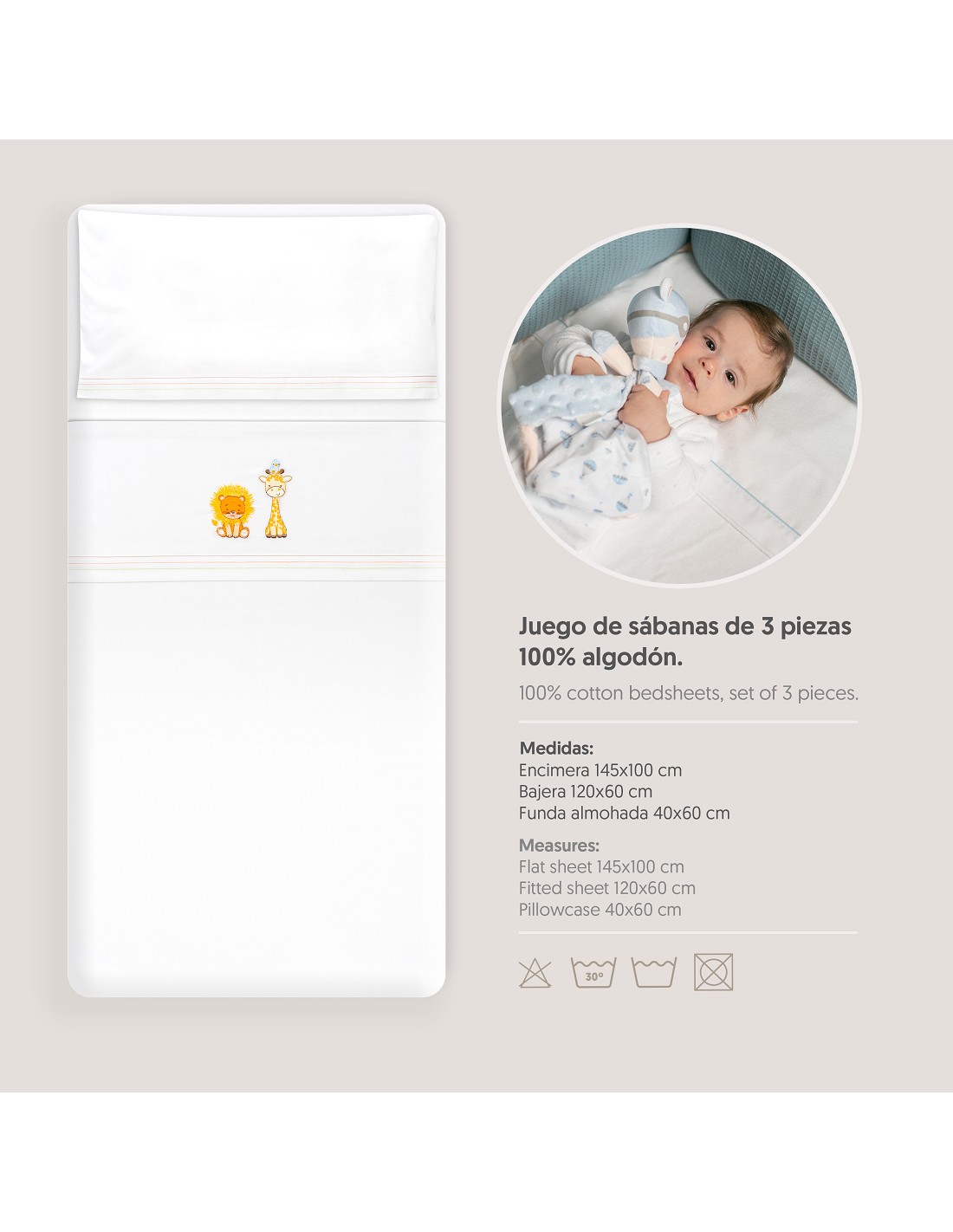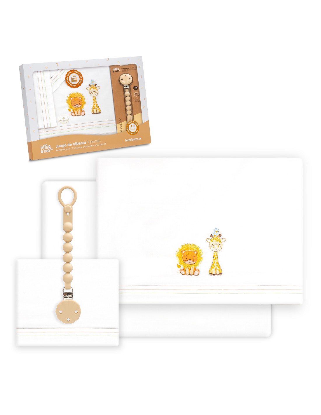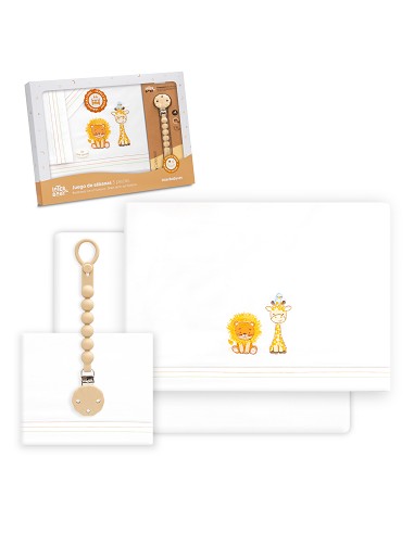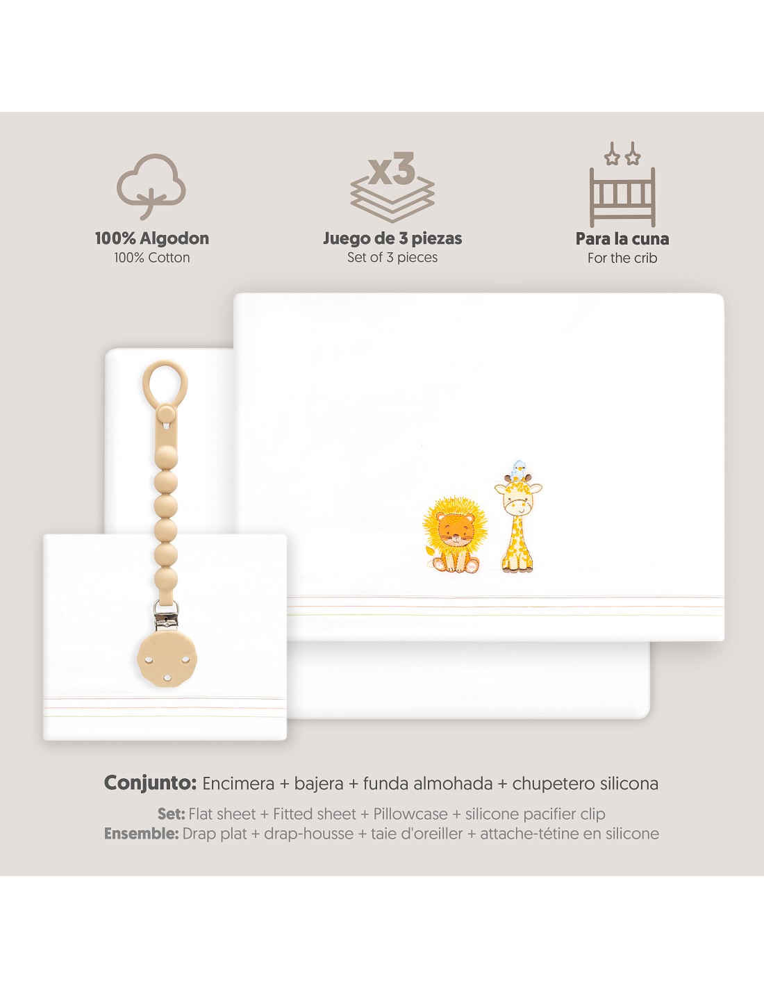 Triptico Cuna Leon Jirafa Pajarito + Broche Blanco