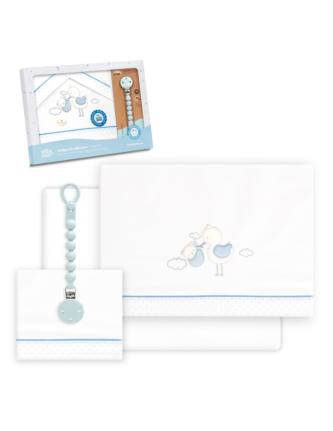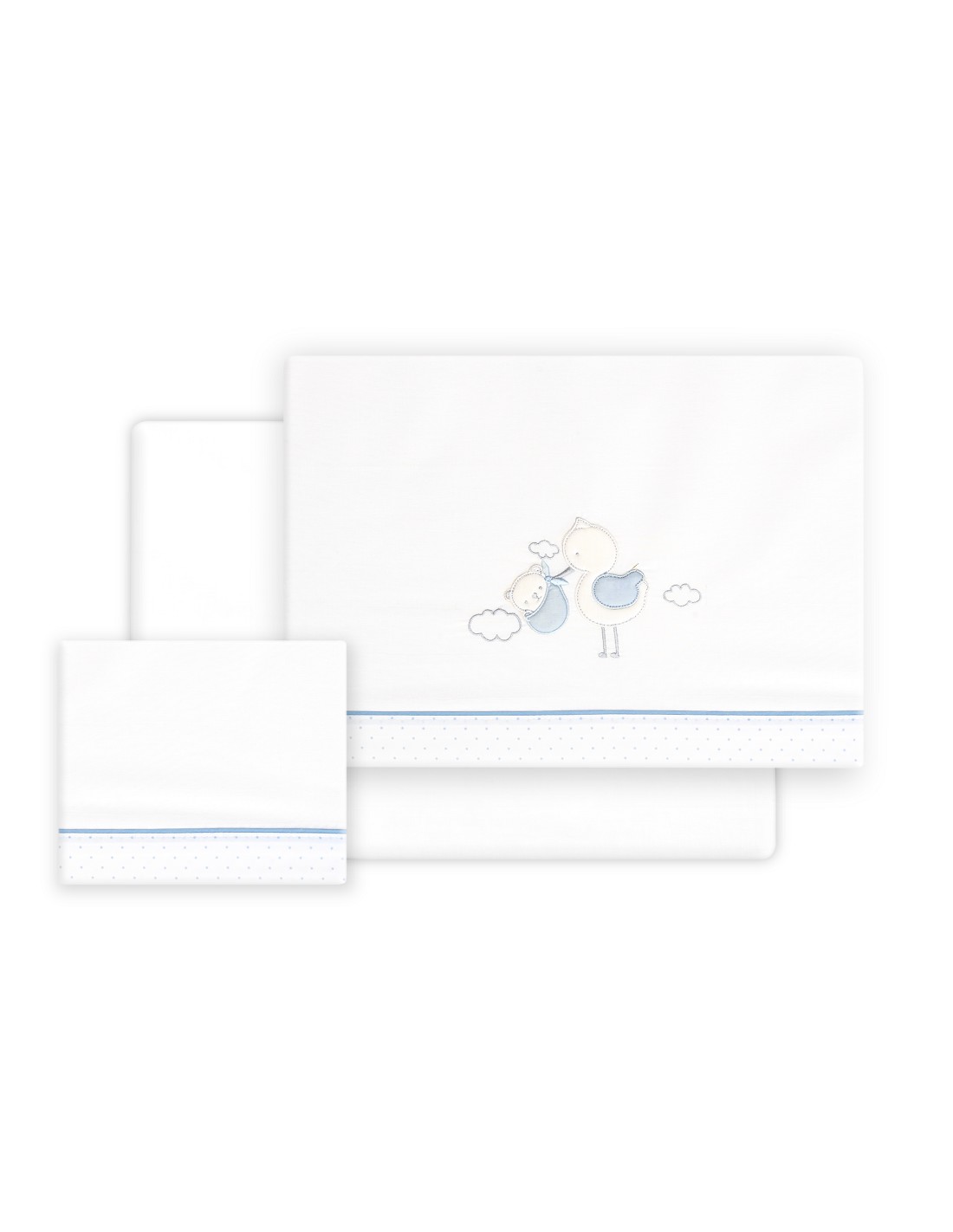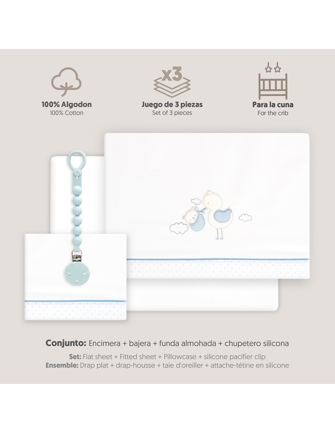 Triptico Cuna Cigueña Oso + Broche Bco/Azul