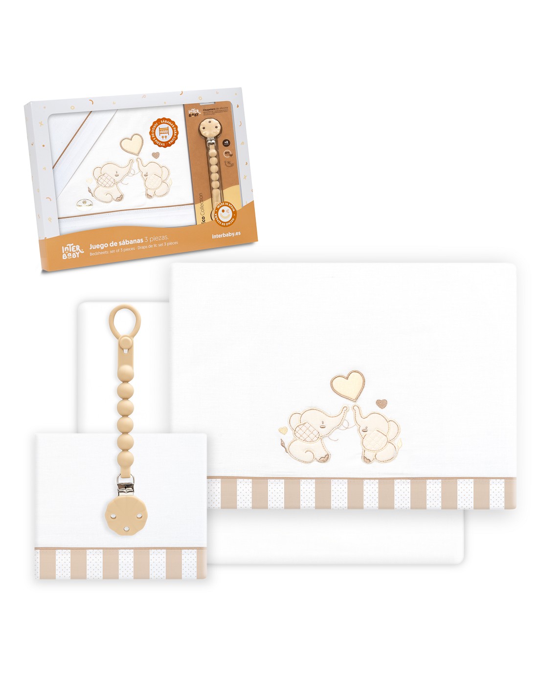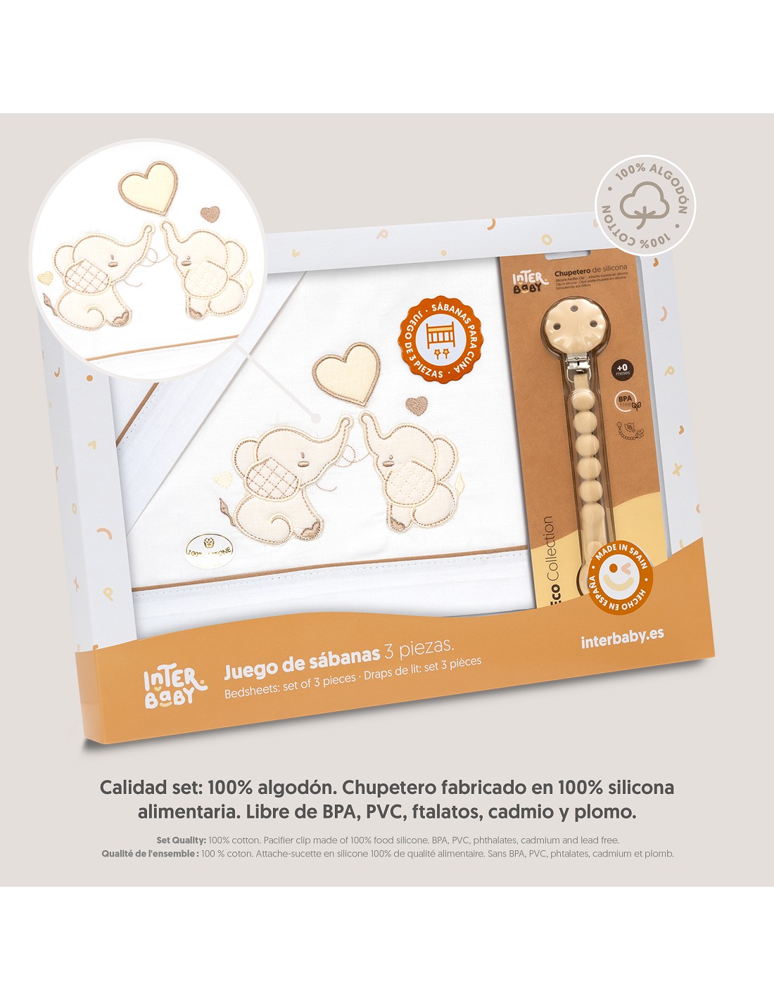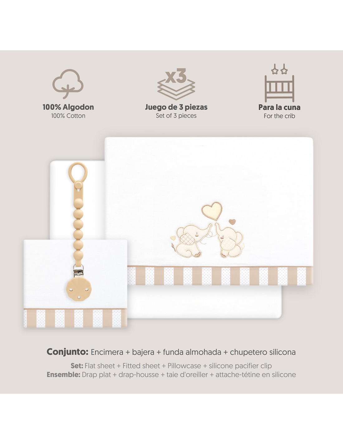 Triptico Cuna Parejita Elefante + Broche Bco/Beig