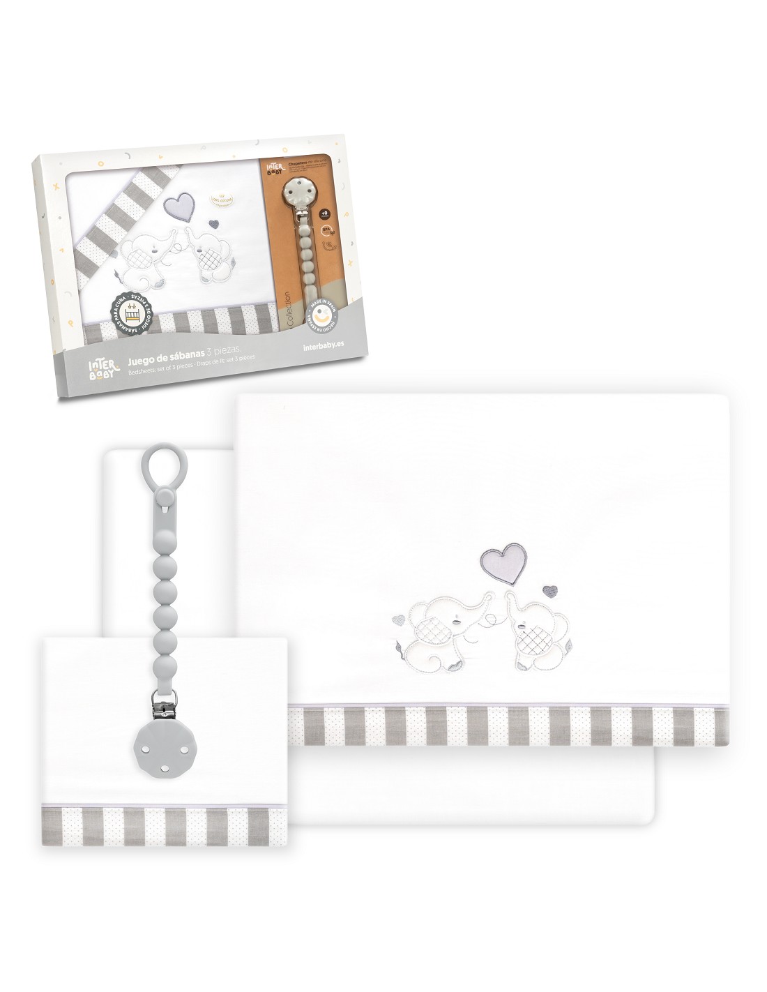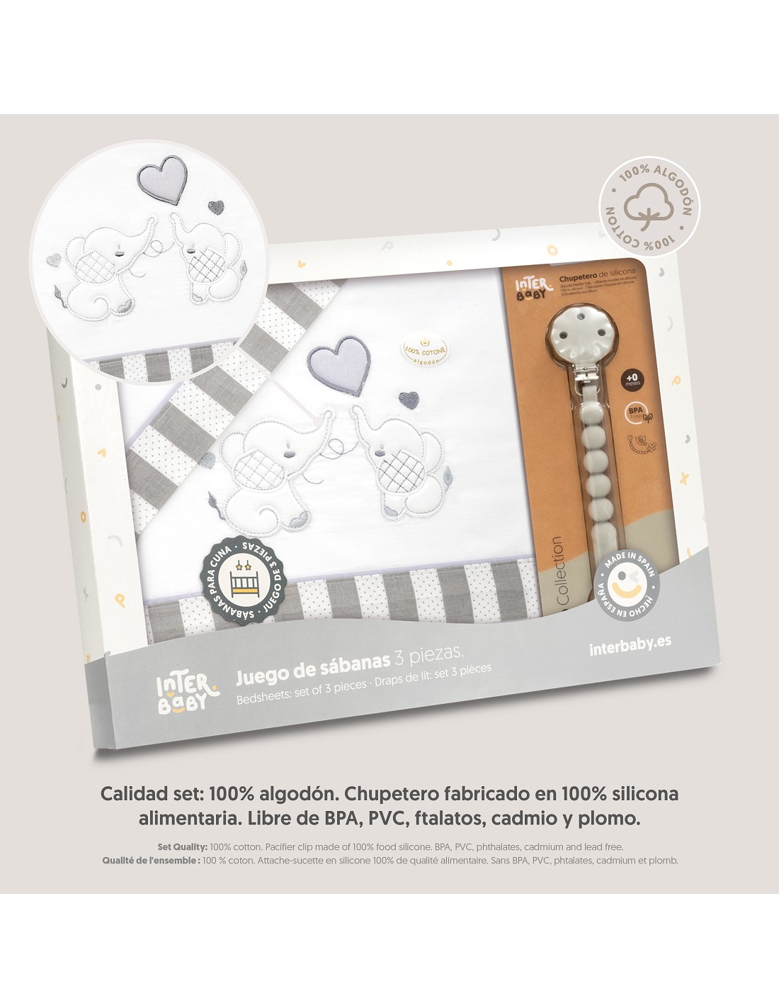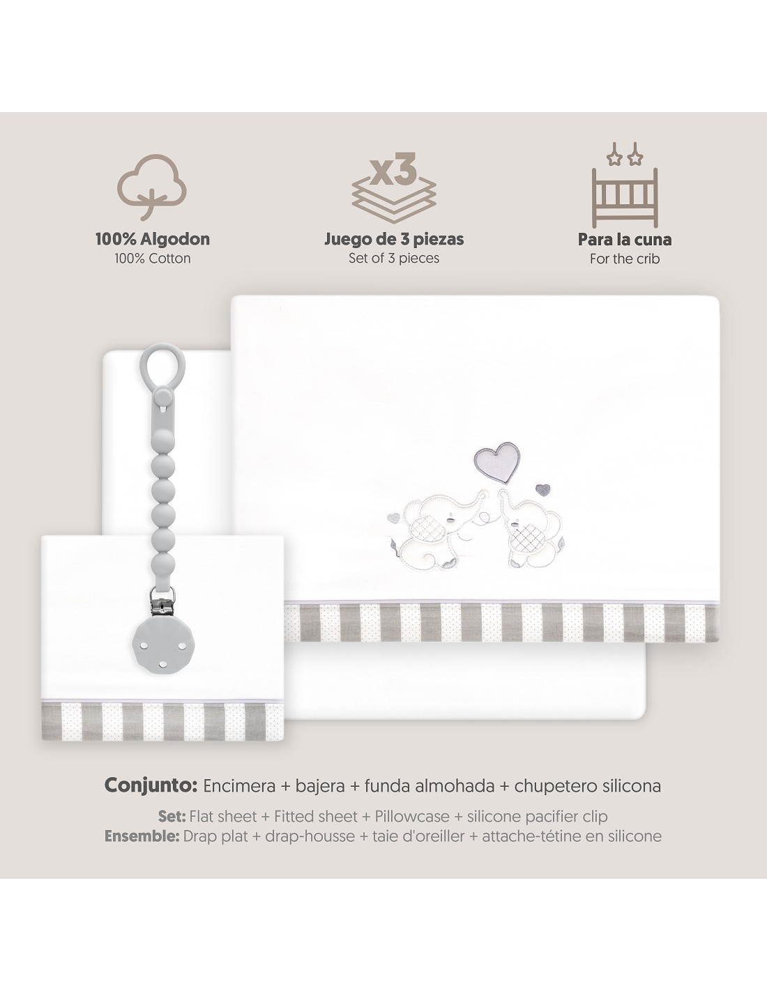 Triptico Cuna Parejita Elefante + Broche Bco/Gris