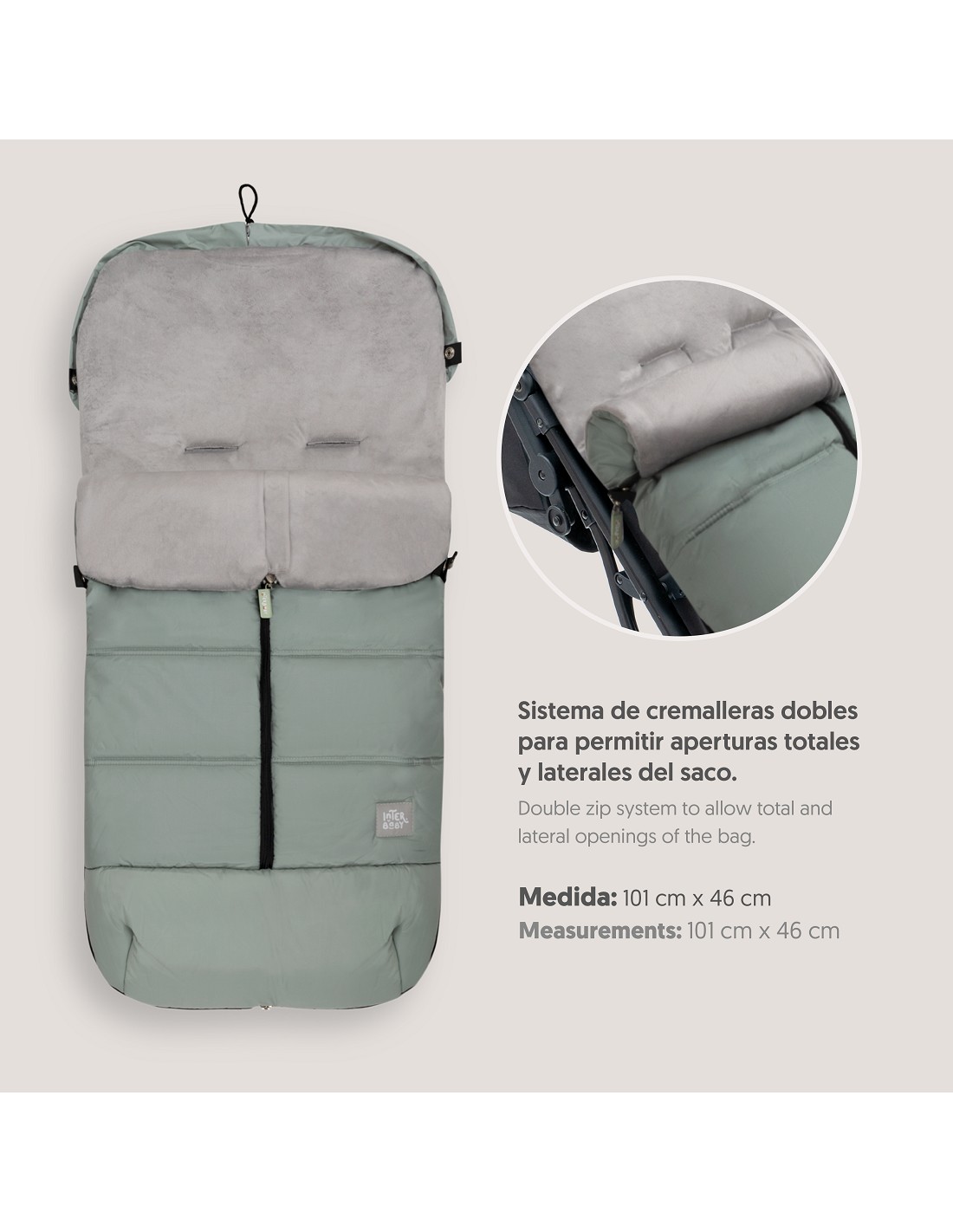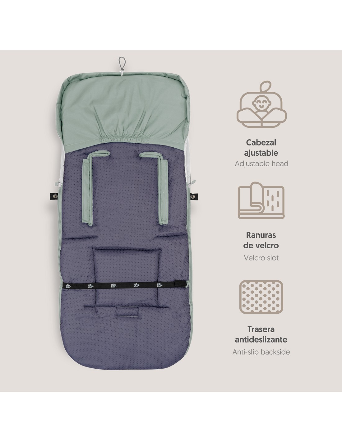 Saco universal para carro. Tejido técnico transpirable de tacto suave, dispersa el sudor y calor corporal. Desmontable en 2 piezas , sirviendo también como colchoneta. Incluye protector de pies. Sistema de cremalleras dobles que permite apertura total y lateral del saco. Fácil lavado . Fabricado con materiales antialérgicos . Máximo confort.