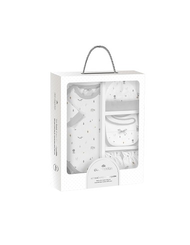 Set Regalo Body 4 Pcs 100% Alg Talla 0-6 Mod Animales Fox Gris