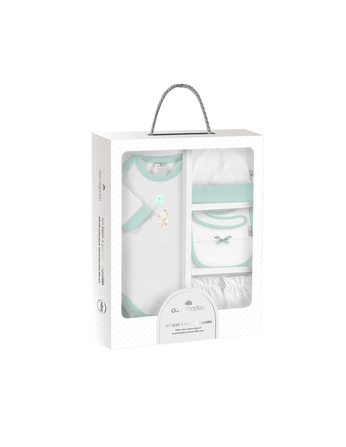 Set Regalo Body 4 Pcs 100% Alg Talla 0-6 Mod Conejito Cometa Verde